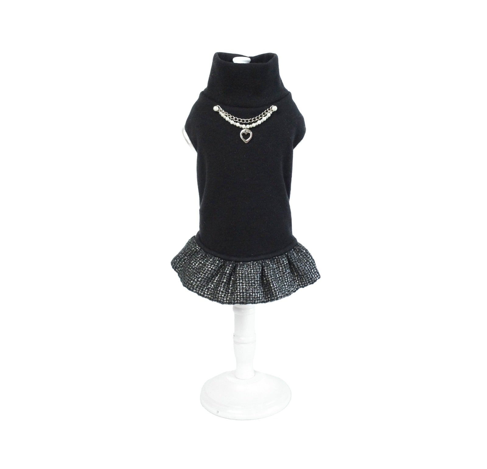 Delizioso ed elegante abitino In caldo cotone con Gonna in tweed spalmato , dettagli di perle e ciondolo Quelinda per un perfetto stile chanel