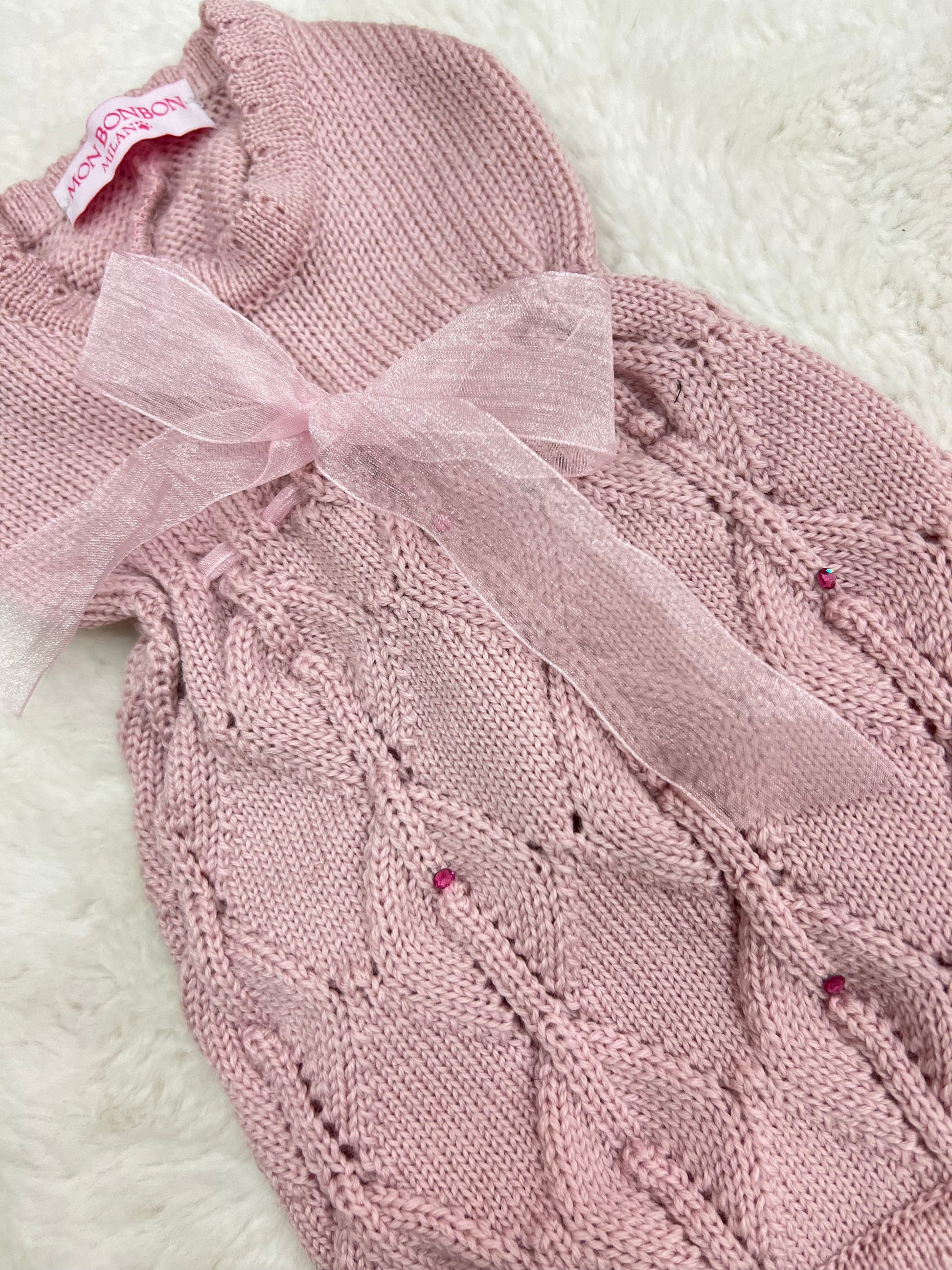 Dolce abito in lana zegna , rimagliato a mano dai dettagli preziosi