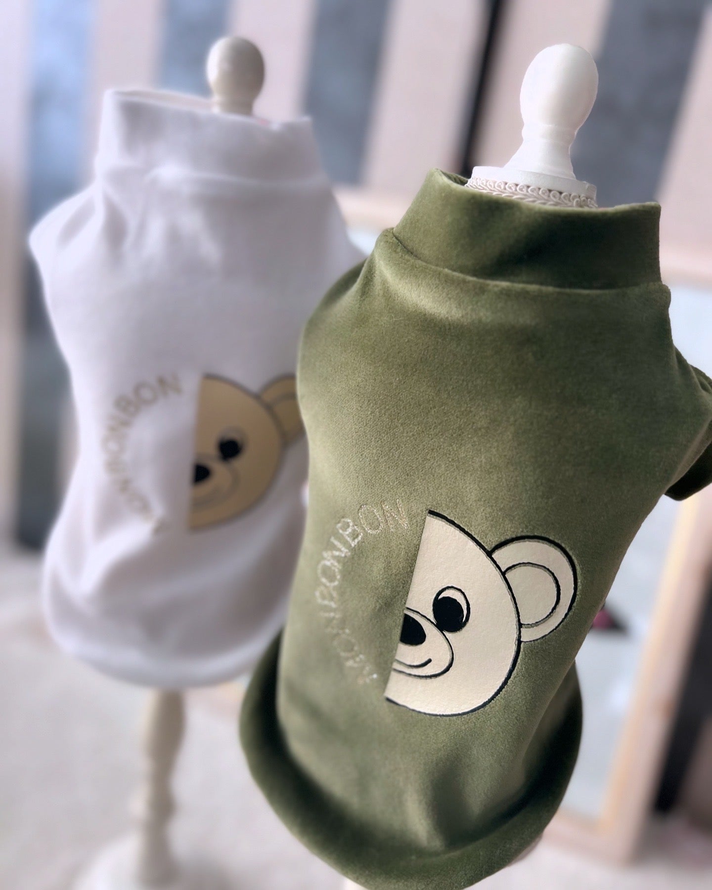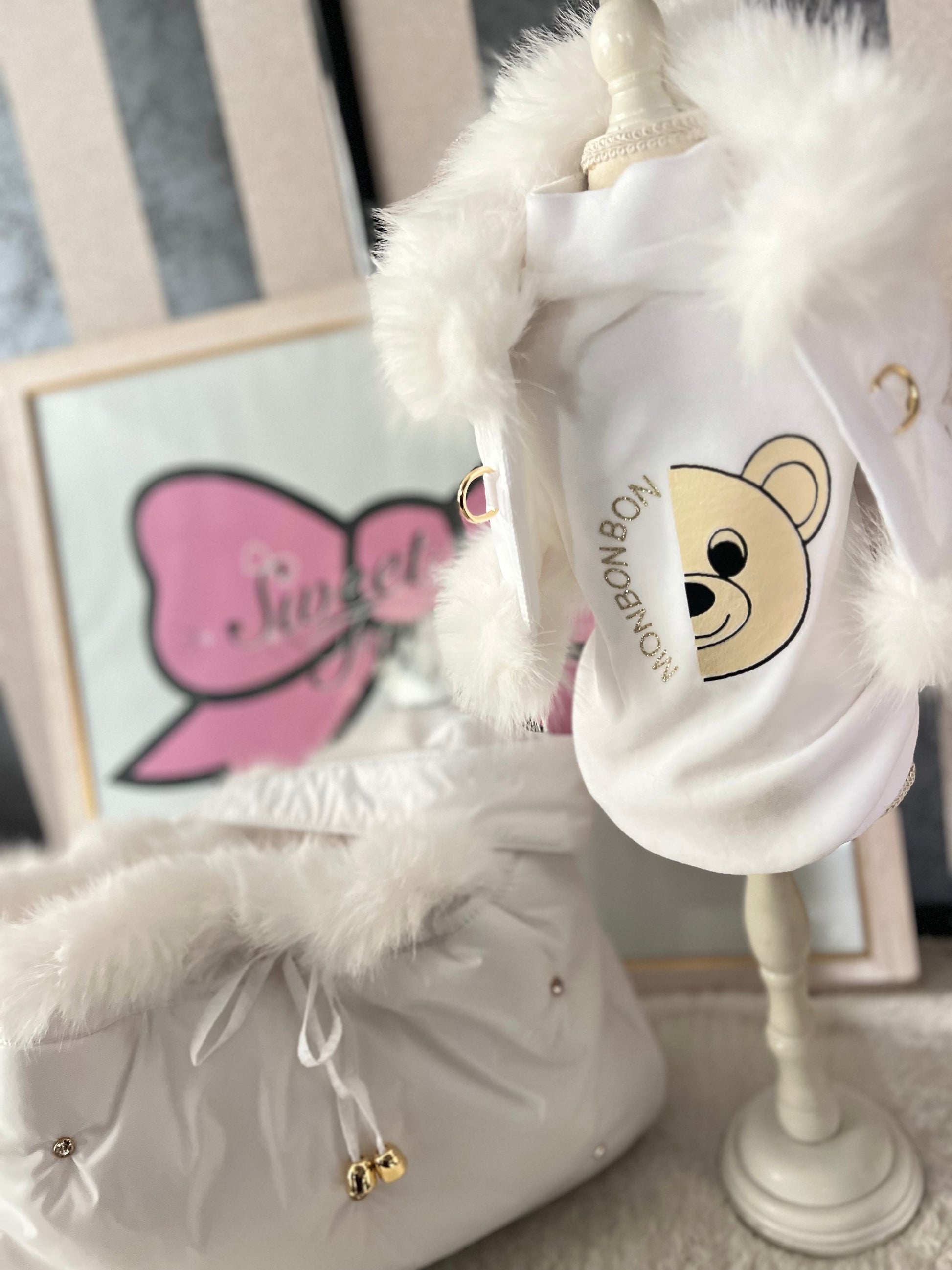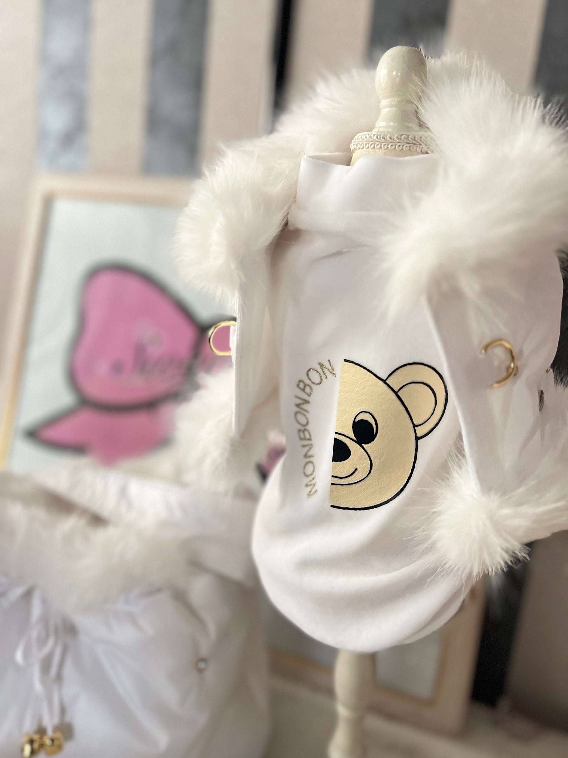 morbida ciniglietta con la dolce patch orsetto e logo monbonbon in oro