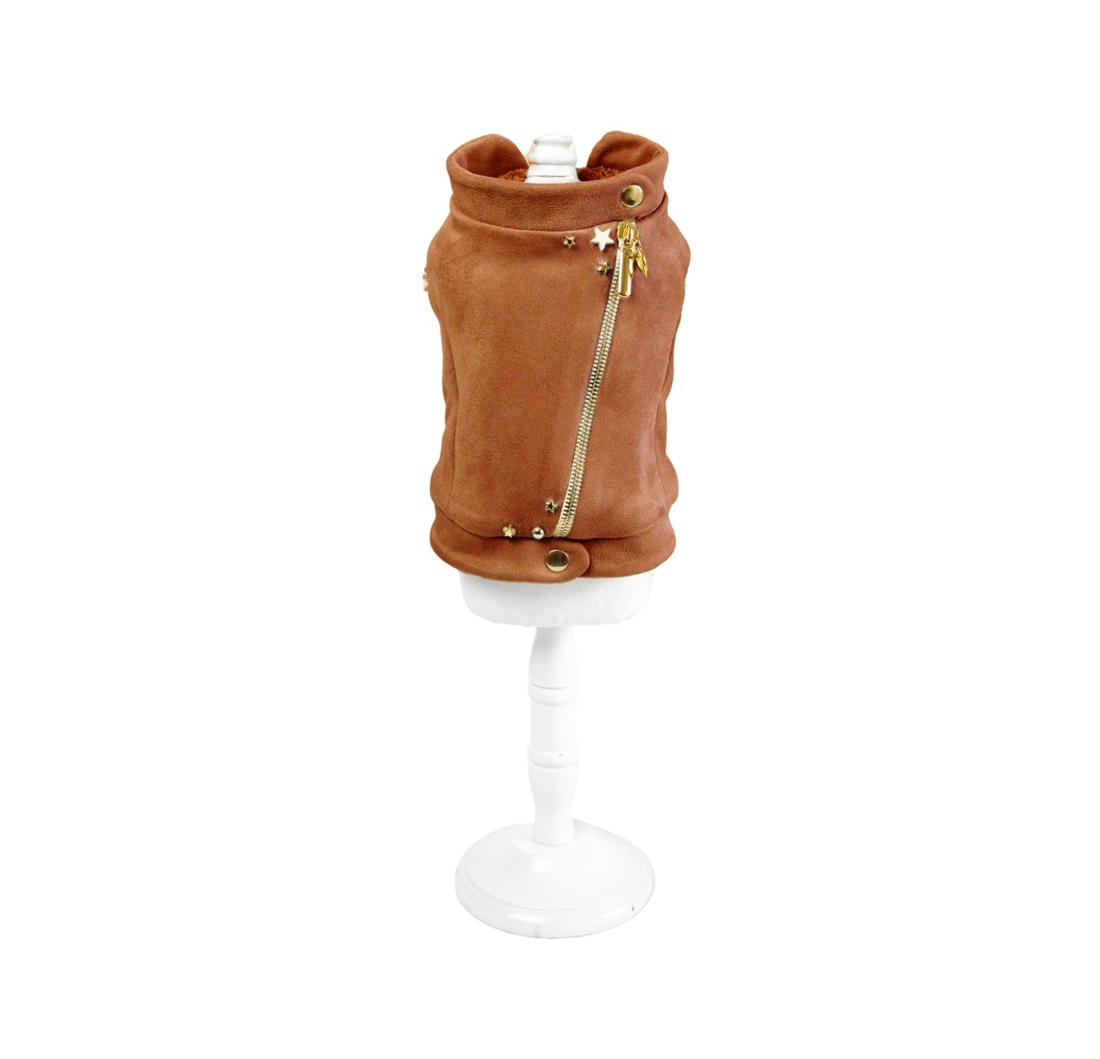 Un chiodino super fashion in suede con cernierina in oro , borchiette e abbottonatura sul pancino con bottoncini snap, interno in borbido e caldo teddy