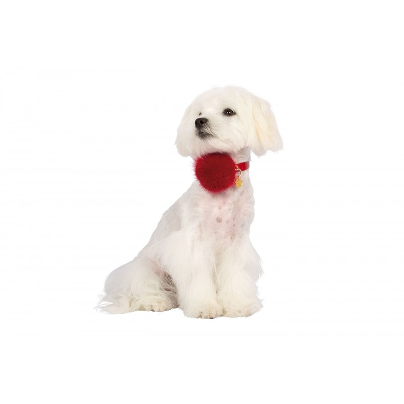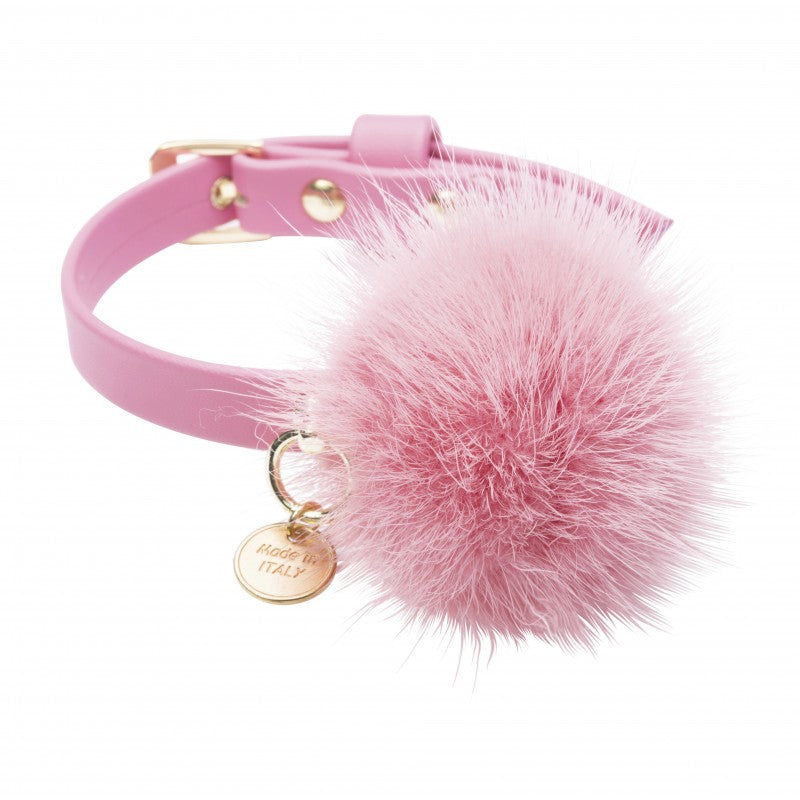 Delizioso collare, impreziosito da un morbido pon pon. Tutto rigorosamente cucito a mano.