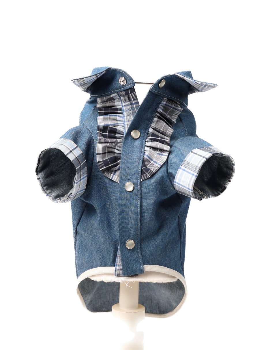 Camicina in Jeans con rifiniture British e stanpa glitter.