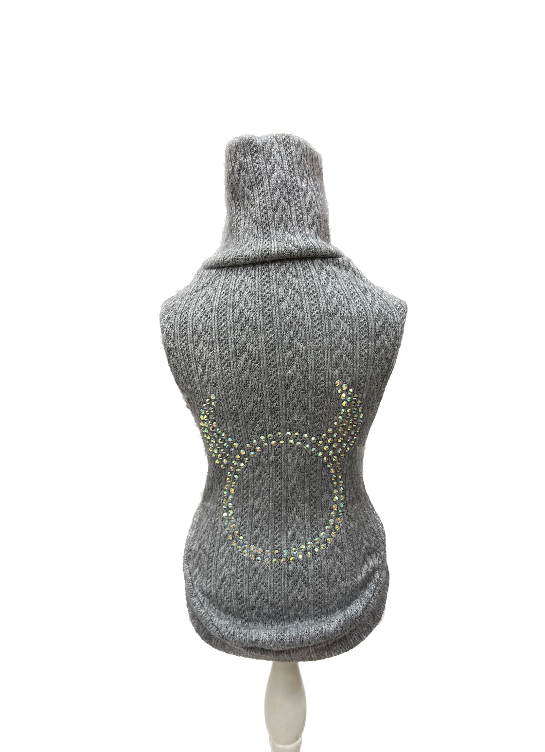 Dolcevita in maglia lavorata e strass aurora boreale cecoslovacco sulla schiena
