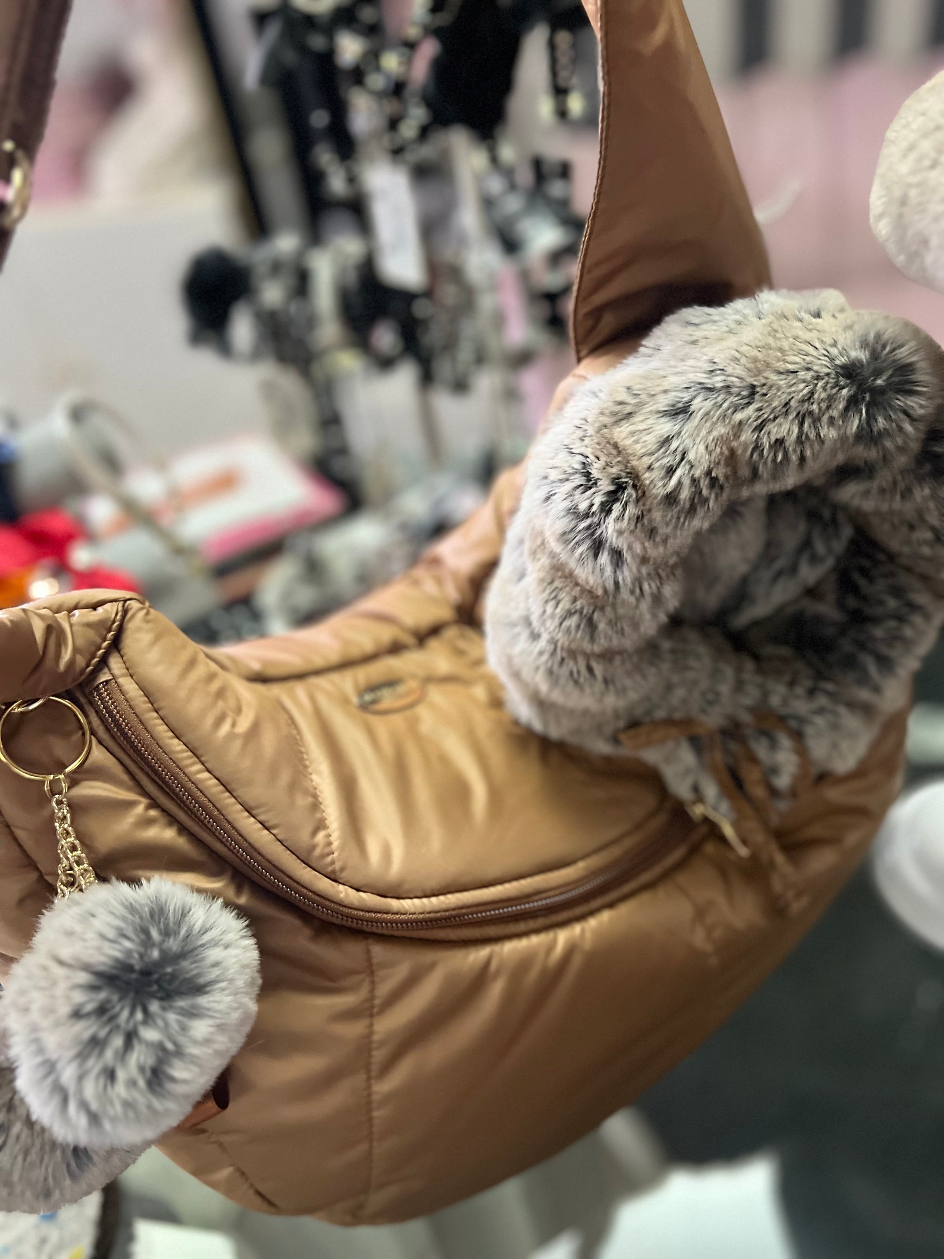 La classica shoulderbag si rinnova prendendo la forma di un marsupio avvolgente , leggera e super confortevole sarà un accessorio moda per noi mamme è una soffice coccola per i nostri piccoli