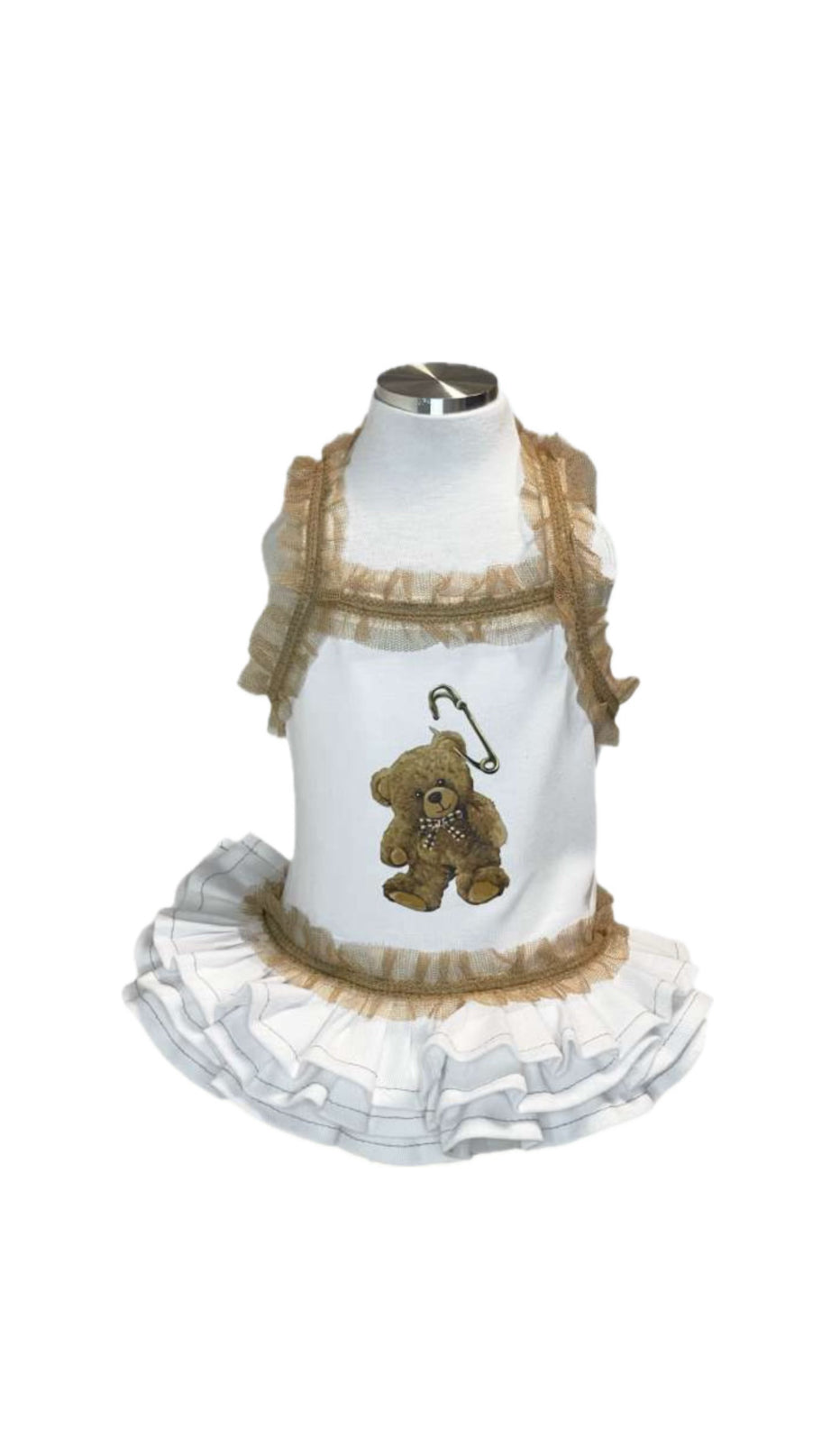 Dolce abitino in cotone , Arricchito da deliziose Rouge che richiamano il colore dell'orsetto