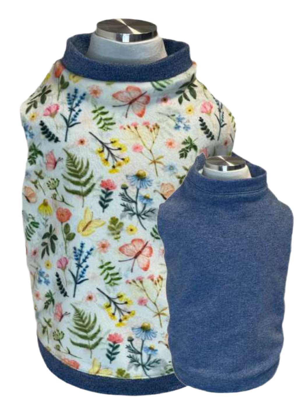 Felpina girocollo double-face con fantasia di fiori primaverili e farfalle