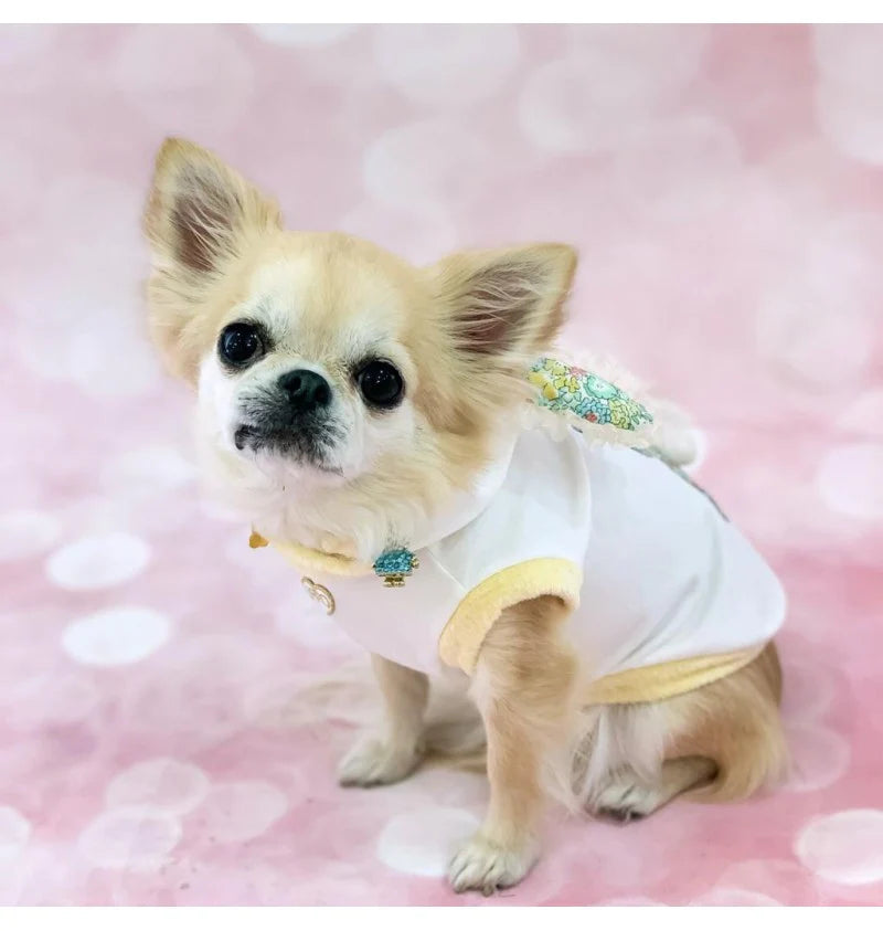 Dolcissima T-Shirt per cani piccoli decorata con un tenero coniglietto con morbido pon-pon.