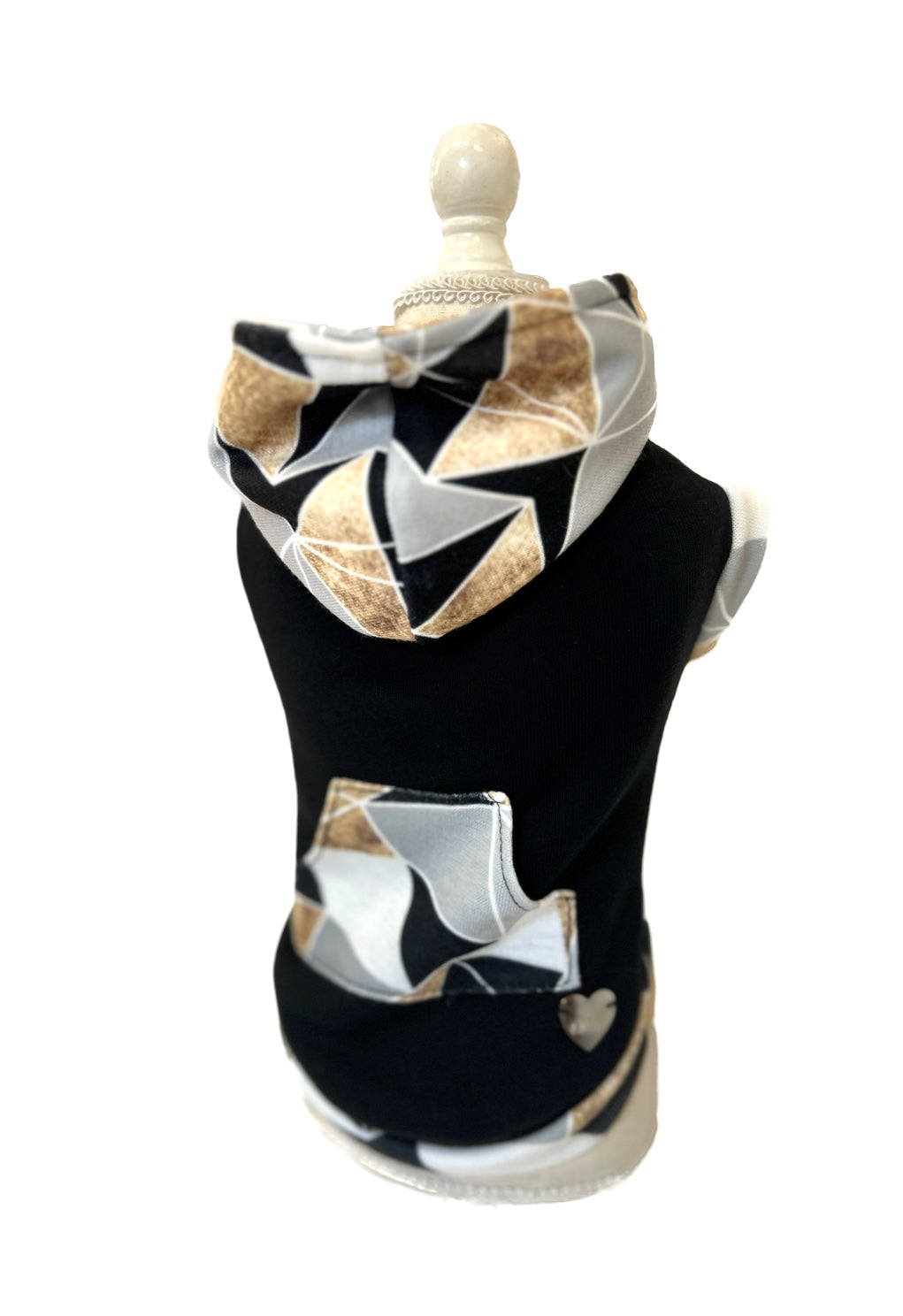 Morbida e calda felpina con cappuccio , dettagli dai motivi geometrici e colori super cool , abbottonatura snap sotto al pancino
