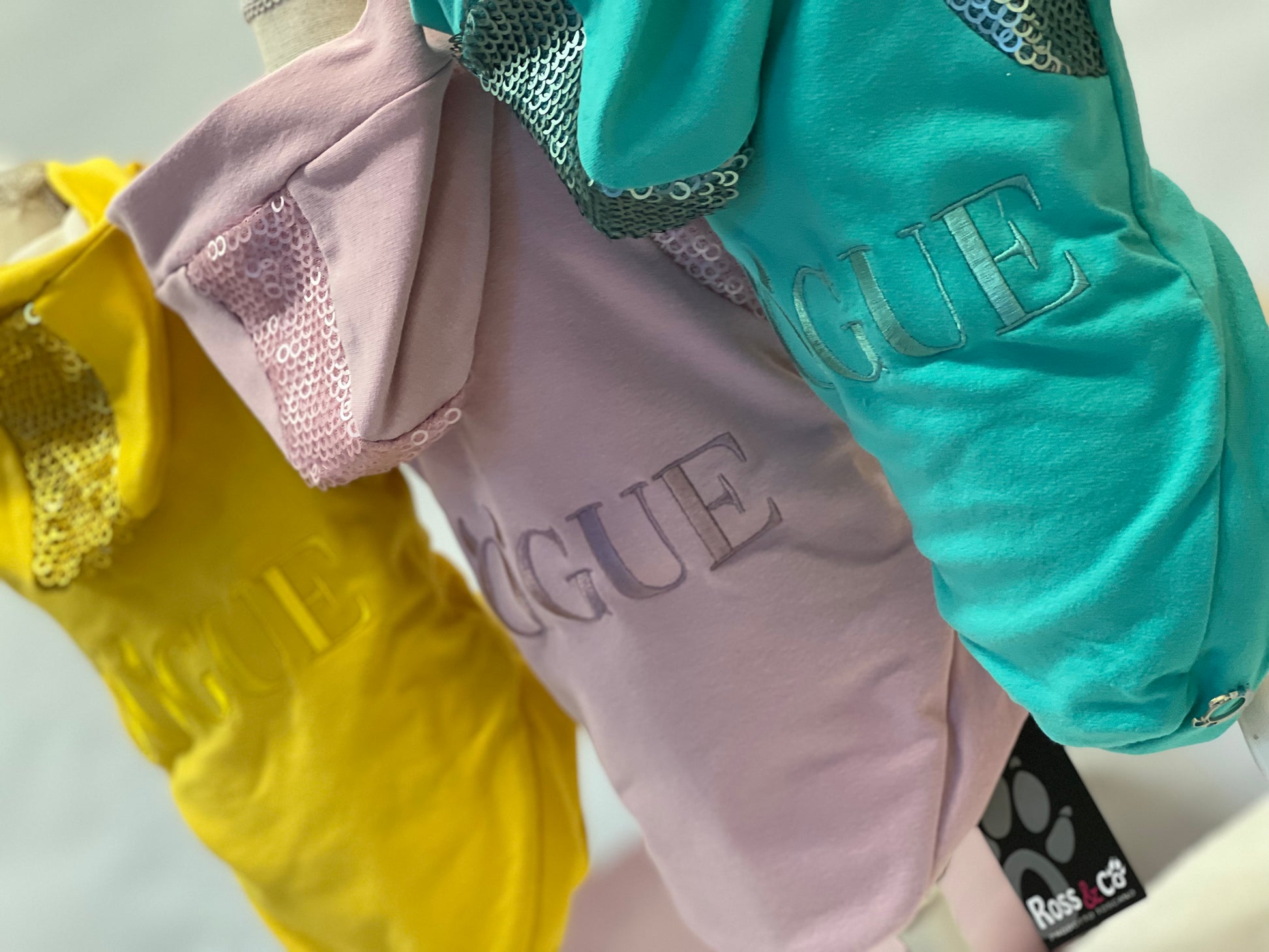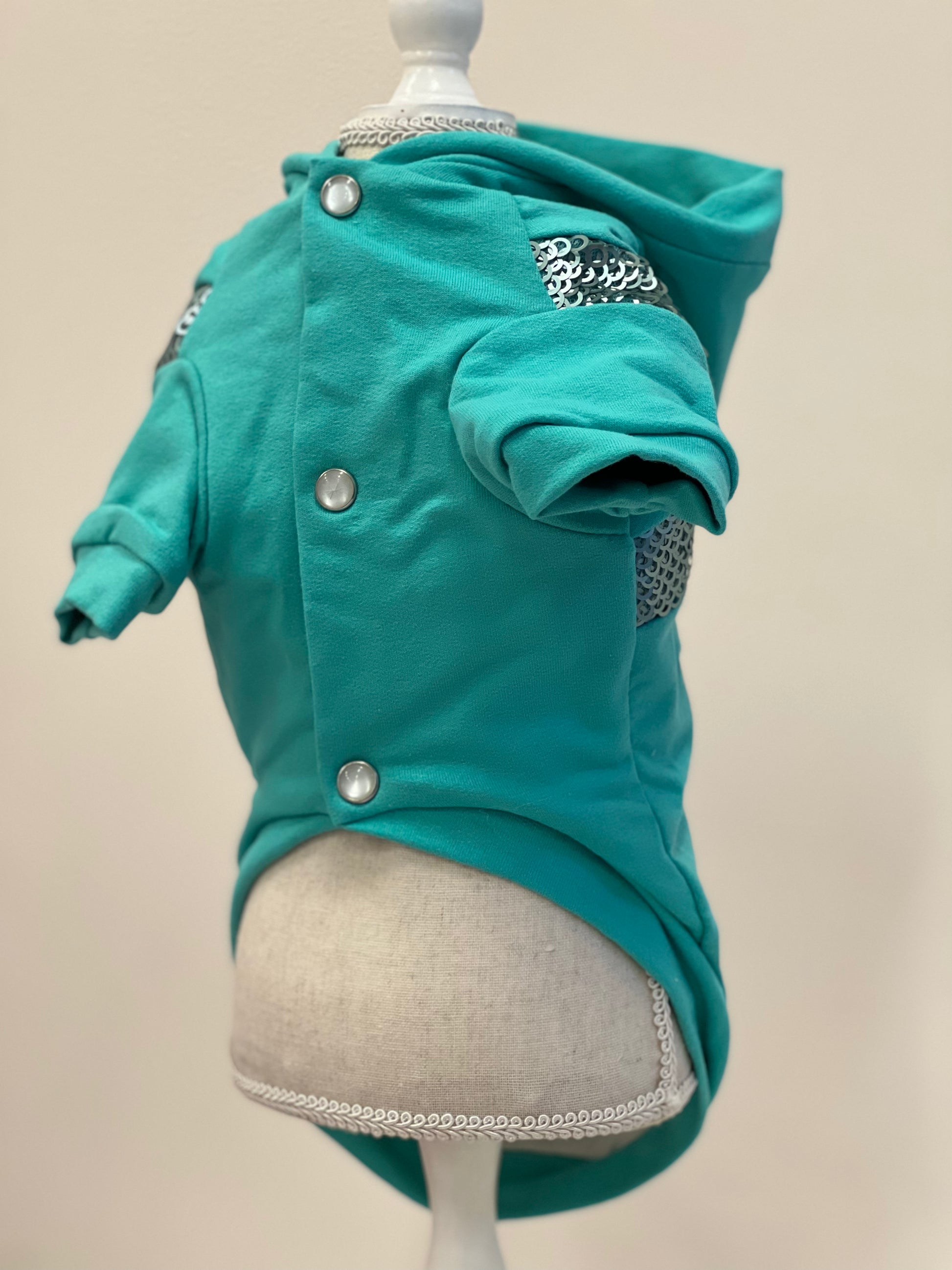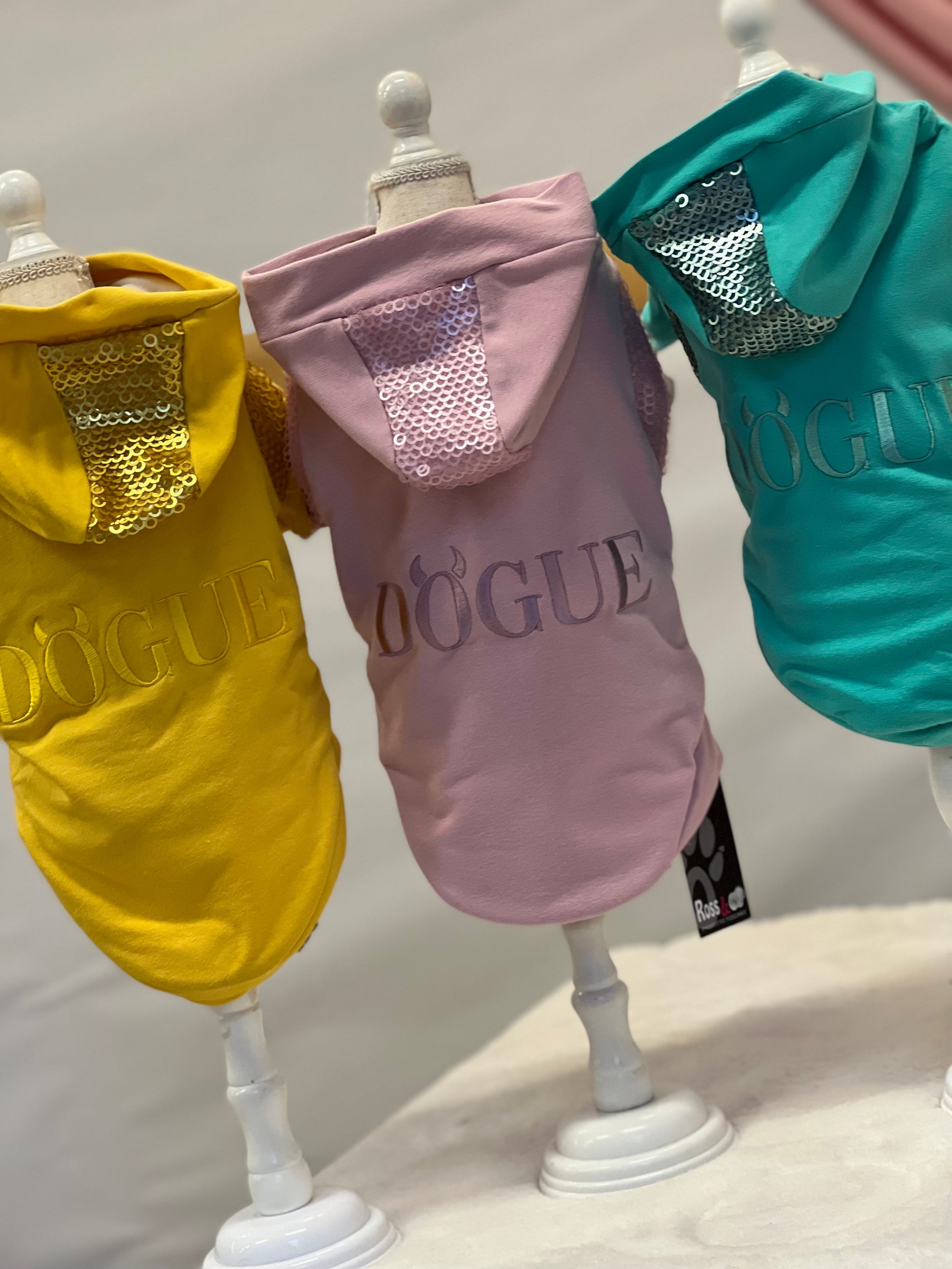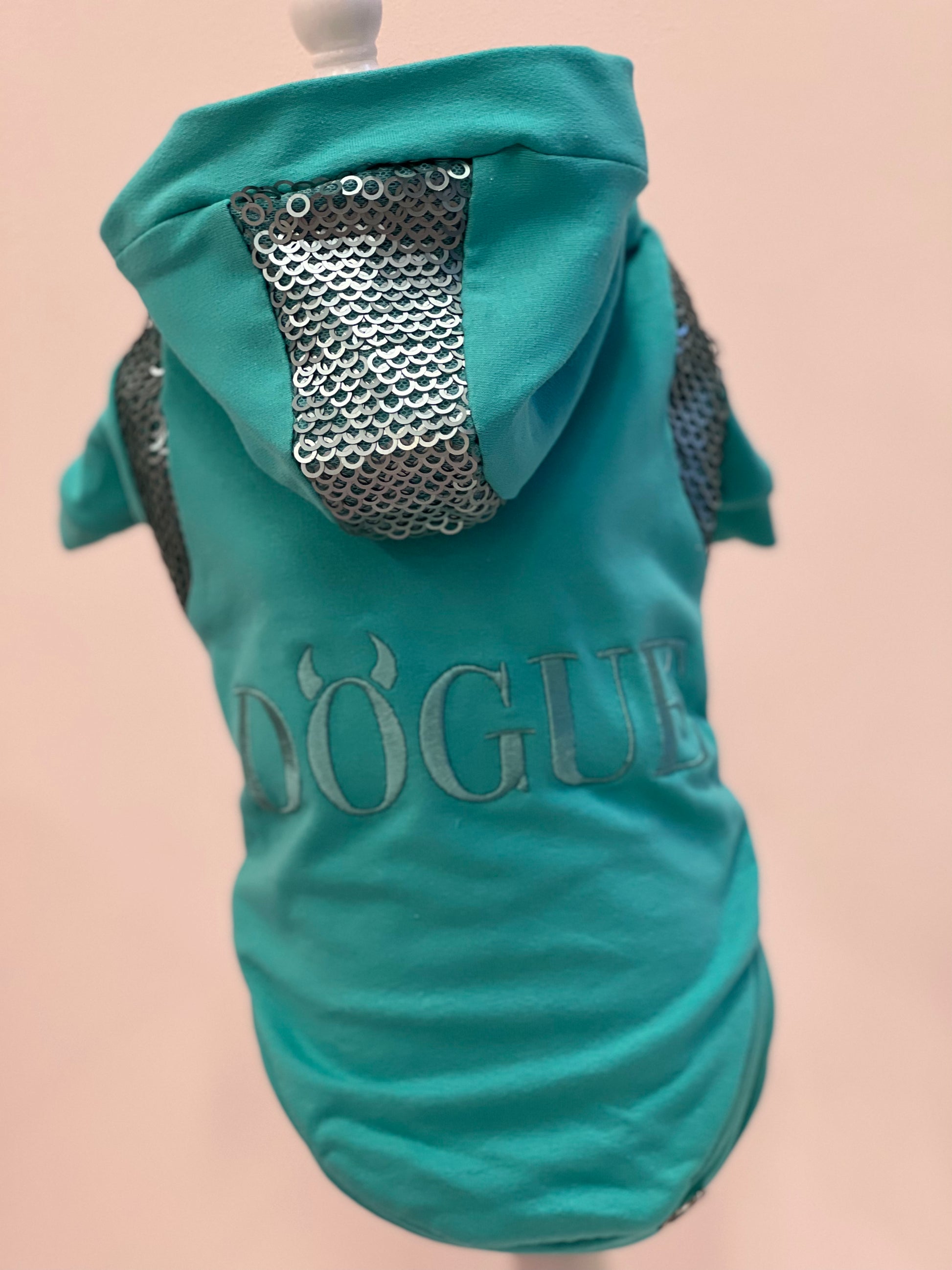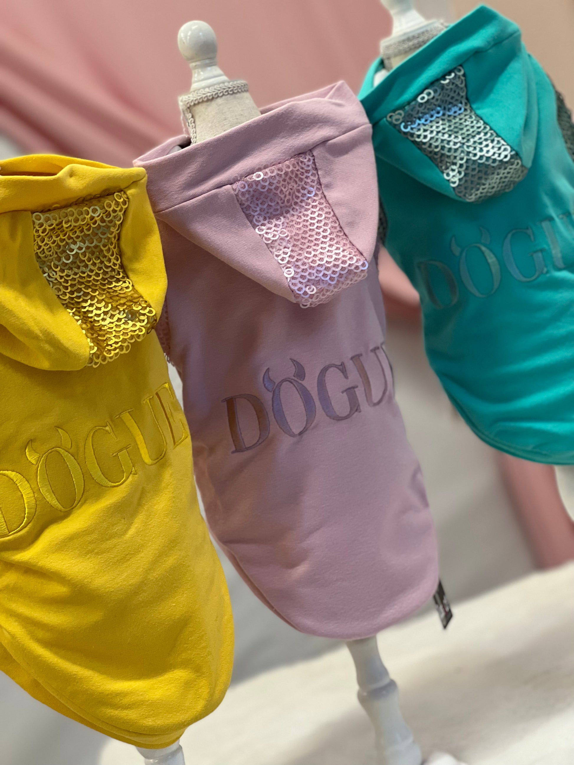 Felpina in cotone elasticizzato con dettagli in Paillettes sul cappuccio e sulle manichine , Ricamo DOGUE sul dorso