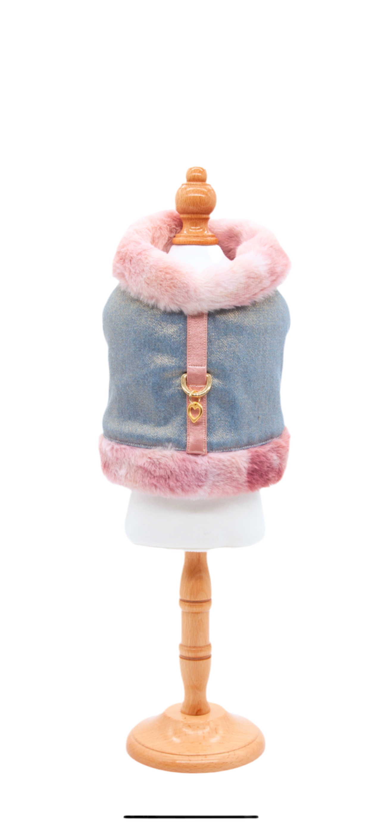 Completano la capsule pettorine in soffice ecopelliccia realizzata con tecnica tie dye, pettorina in