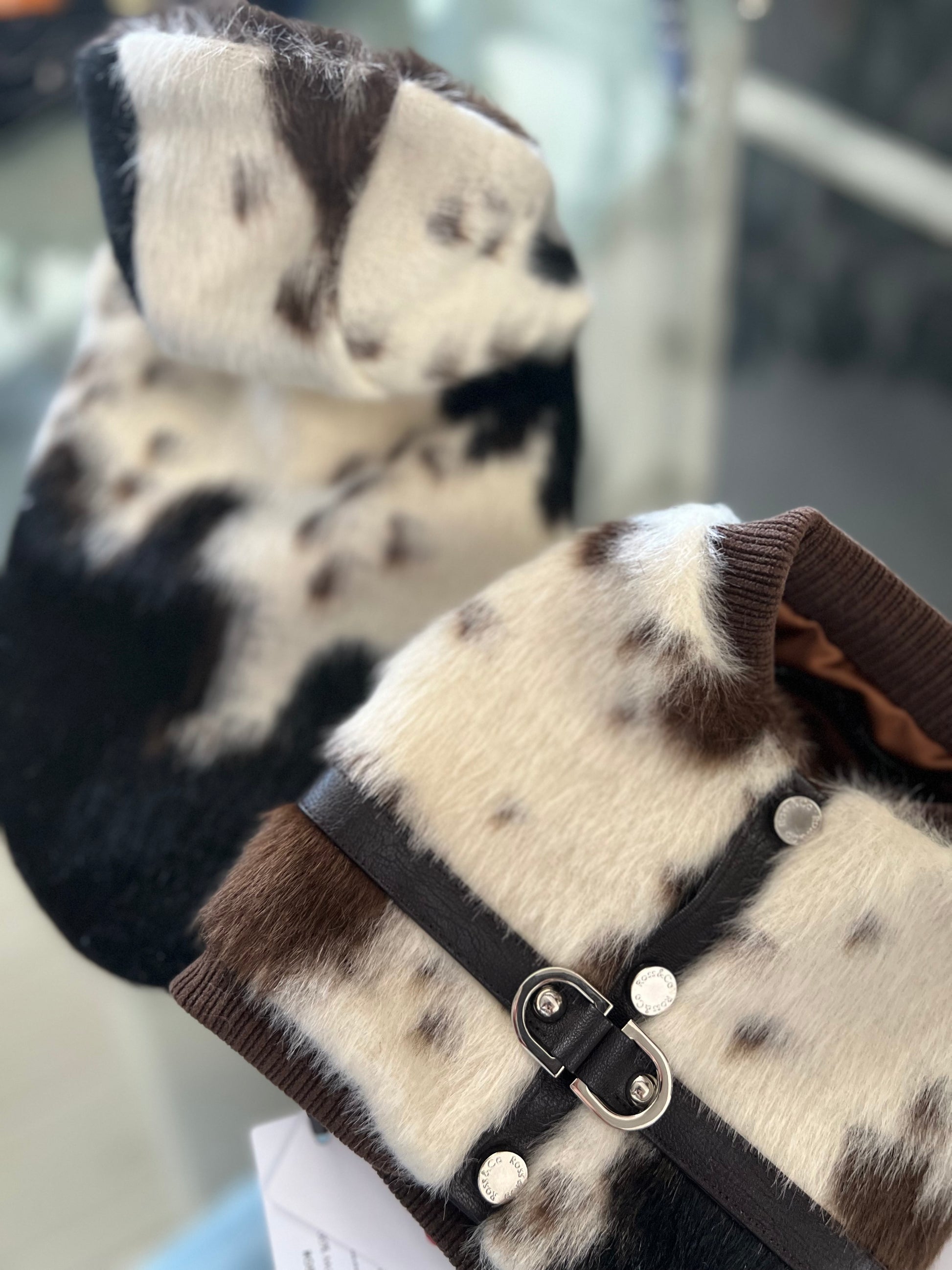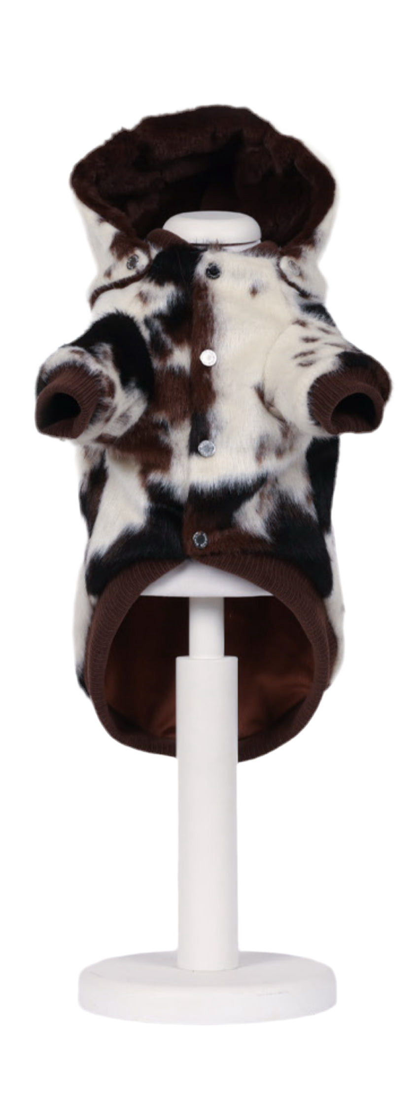 Giacca super alla moda in tessuto Modal cavallino , foderata in calda e morbida ciniglia , chiusura bottoncini e cappuccio staccabile
