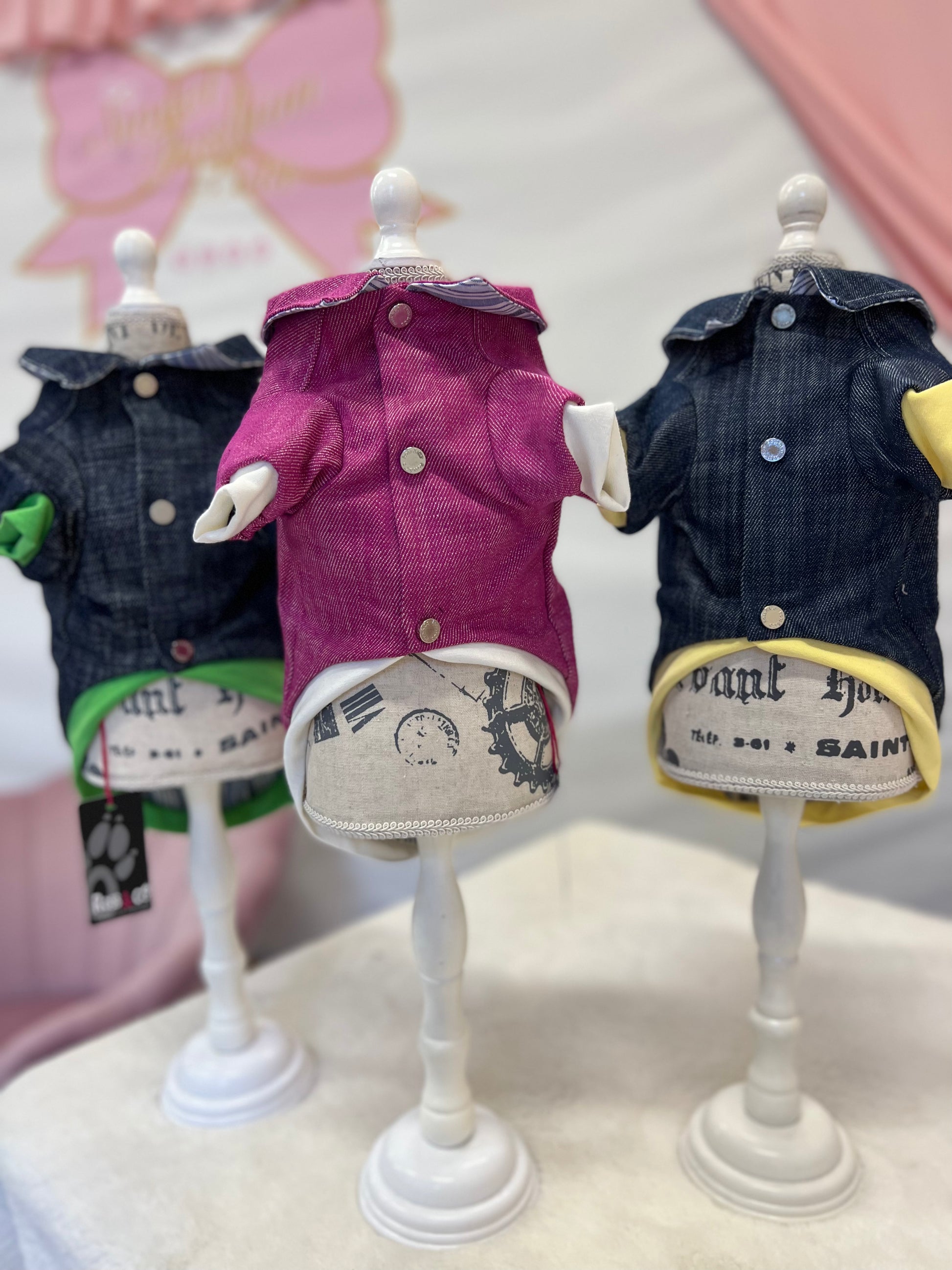 Giubottino in Jeans impunturato , interno in misto lino con il simpatico e super glamour logo diavoletto Borchiato sul dorso .