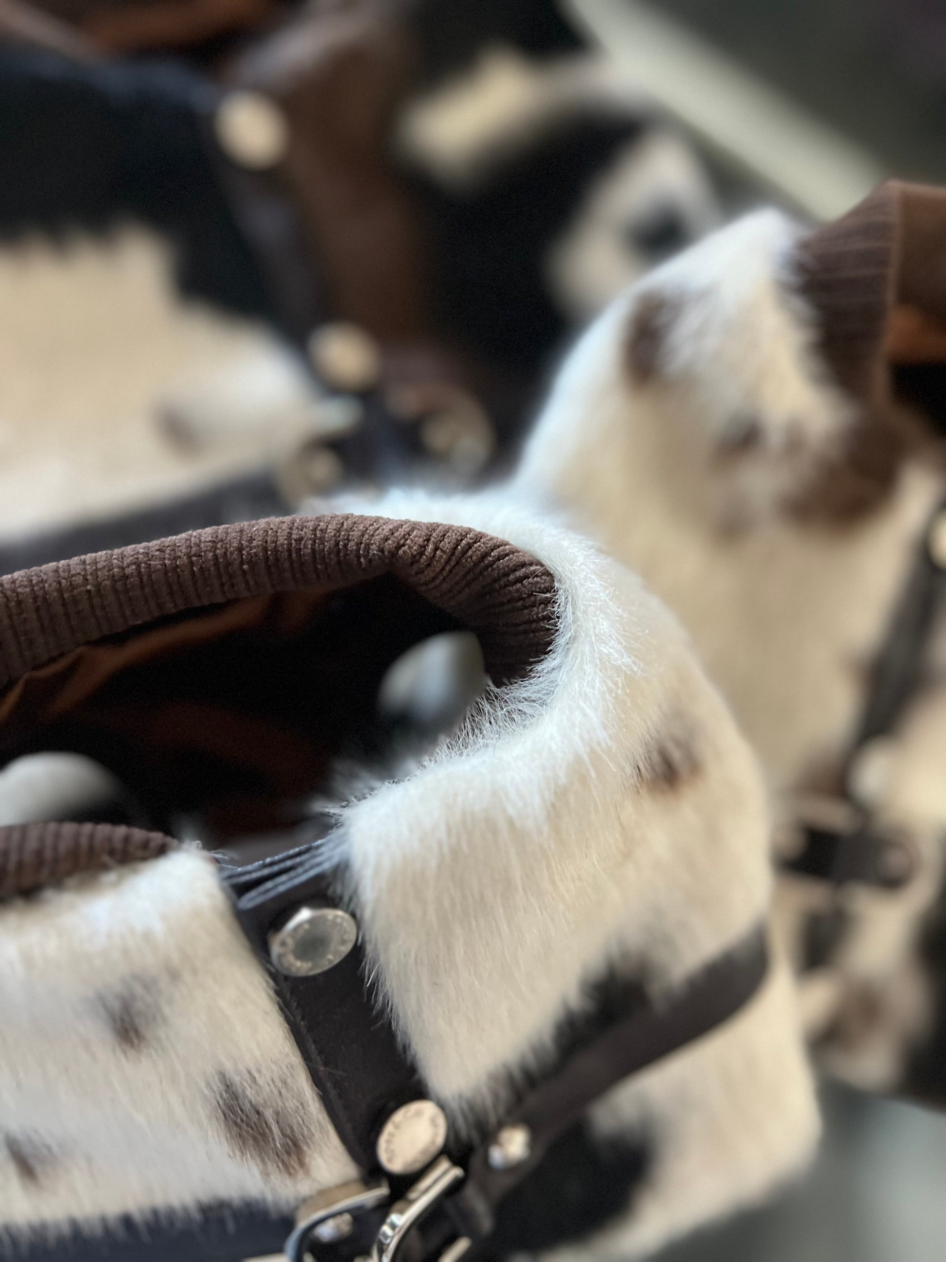 Pettorina super alla moda in tessuto Modal cavallino , foderata in tessuto anti nodo , chiusura bottoncini