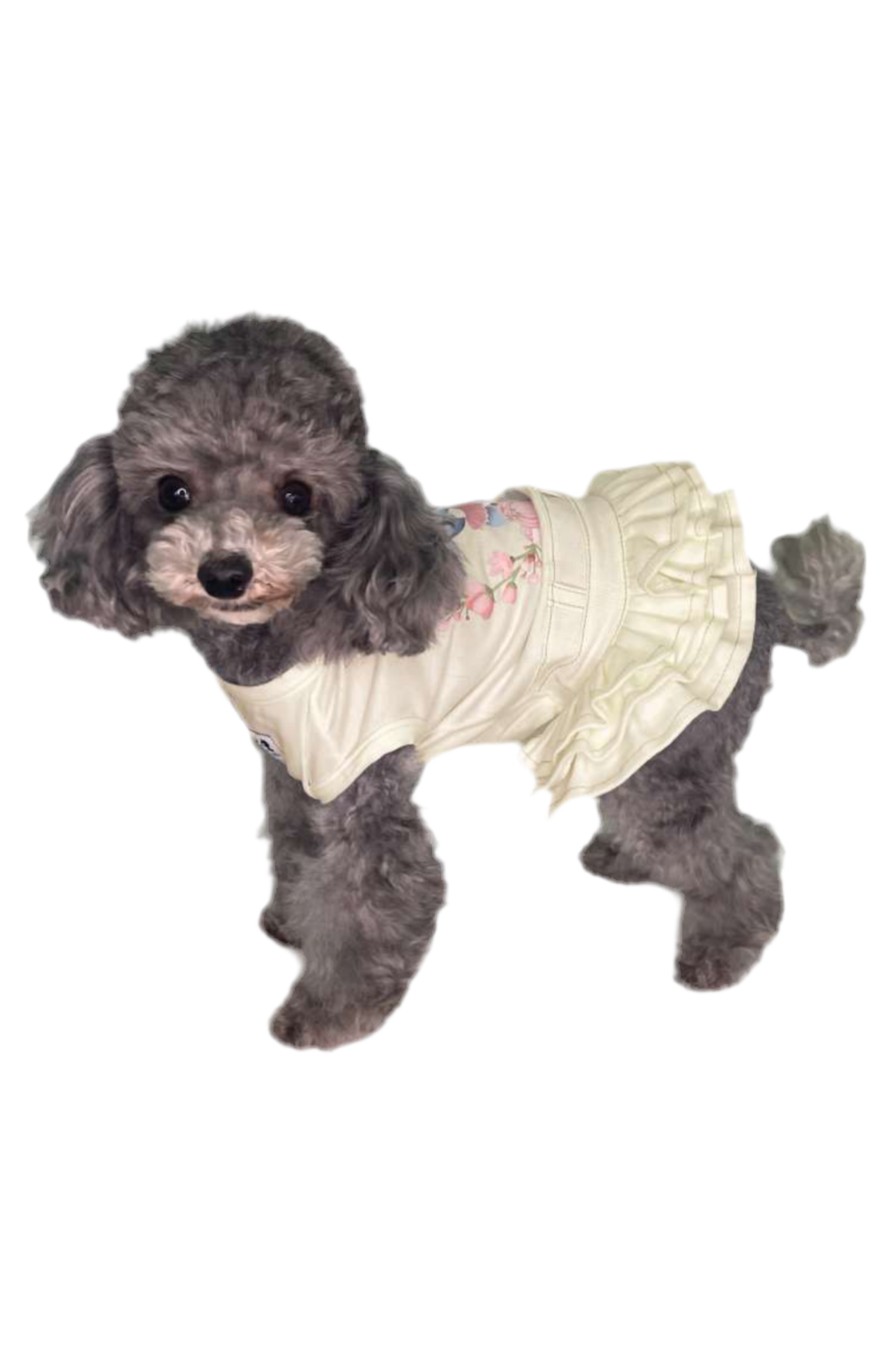 Dolce abitino in cotone , con stampa elefantino , gonnellino a tre balze effetto jeans