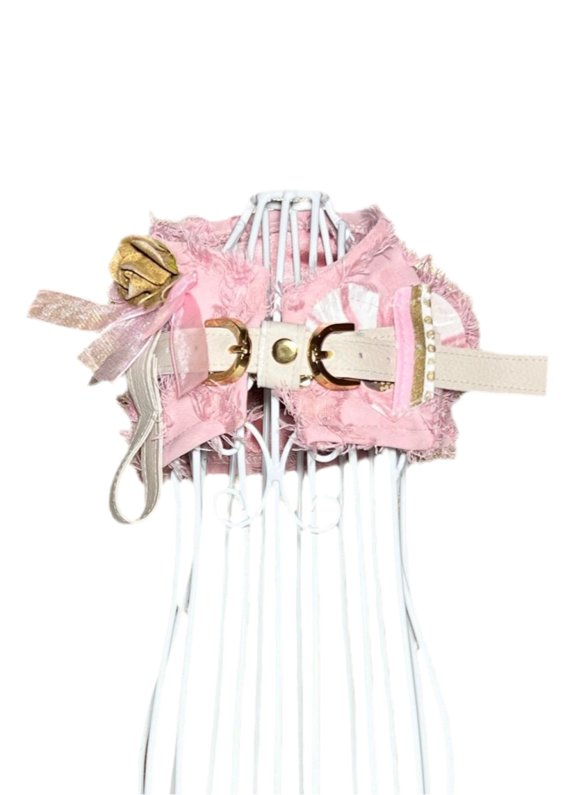 Una Mini harness Così Romantica non l’avete mai vista , il suo tessuto rosa sfrangiato e i dettagli in beige e oro .. vi faranno innamorare perdutamente di lei