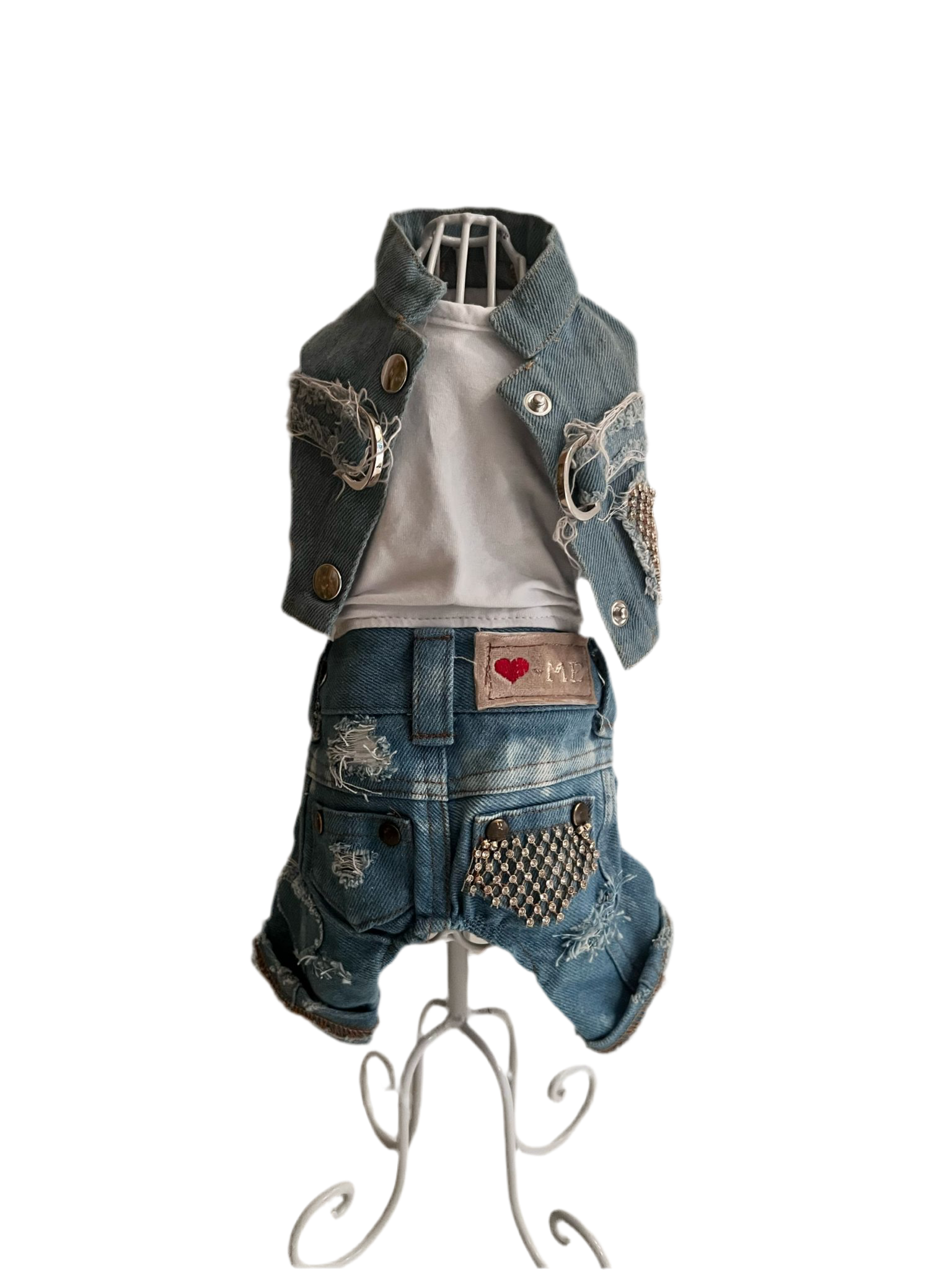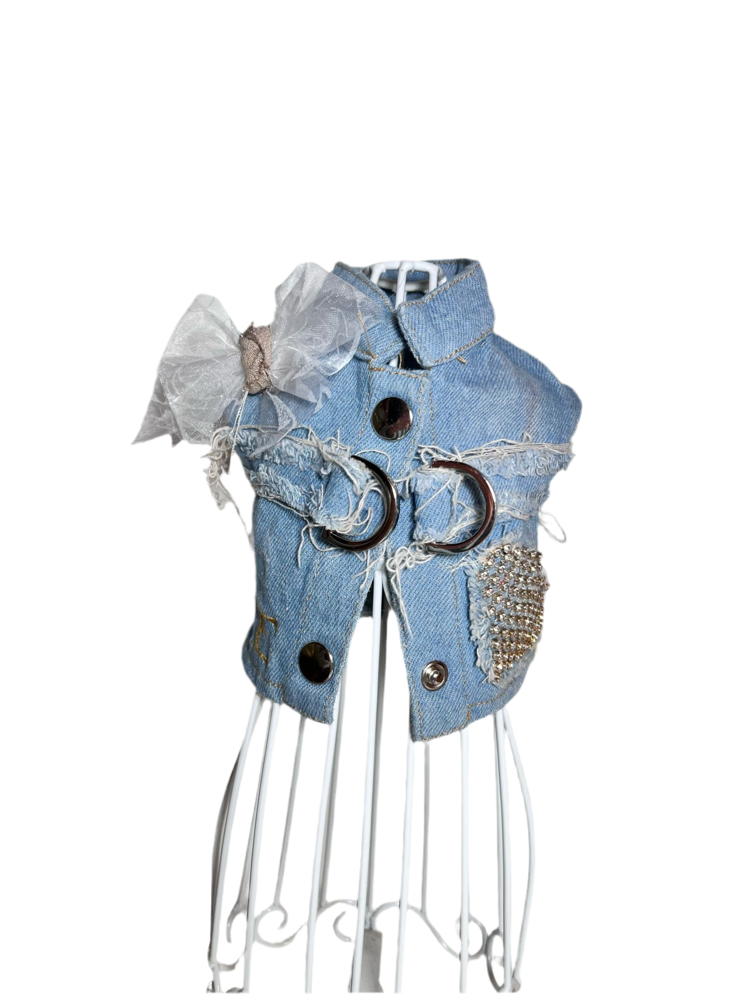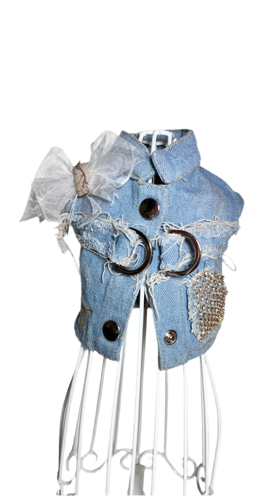 Tailoring Harness in morbido Jeans estivo chiaro con dettagli preziosi e applicazioni Swarovski