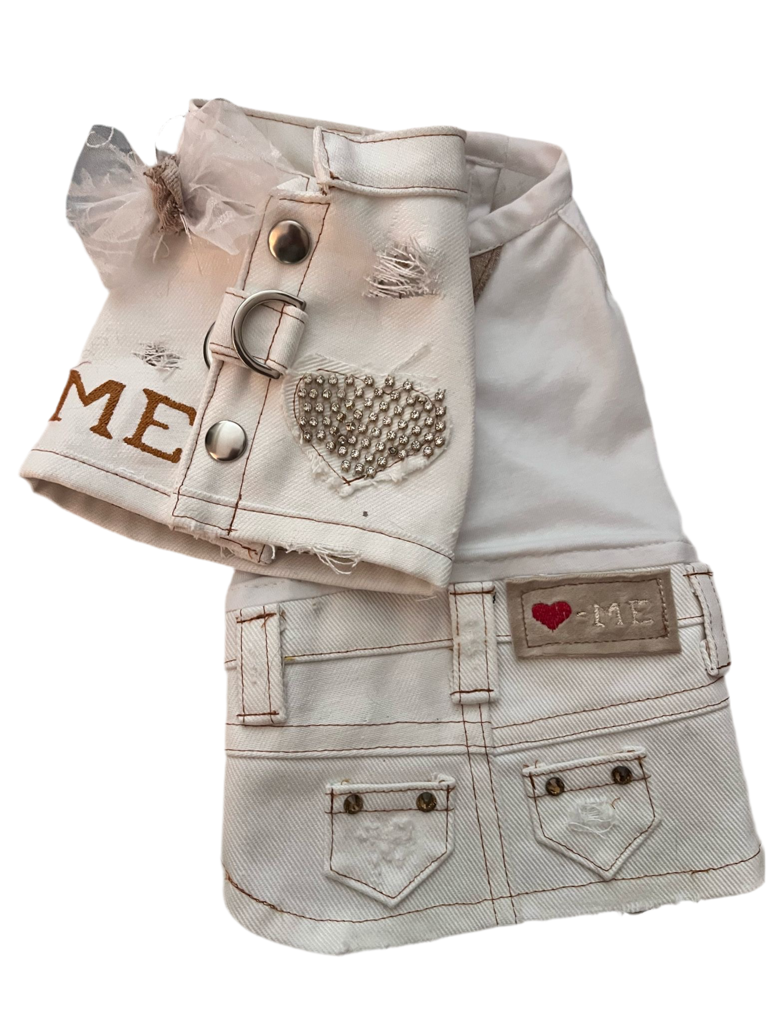 Tailoring Harness in morbido Jeans Giapponese Bianco con dettagli preziosi e applicazioni Swarovski
