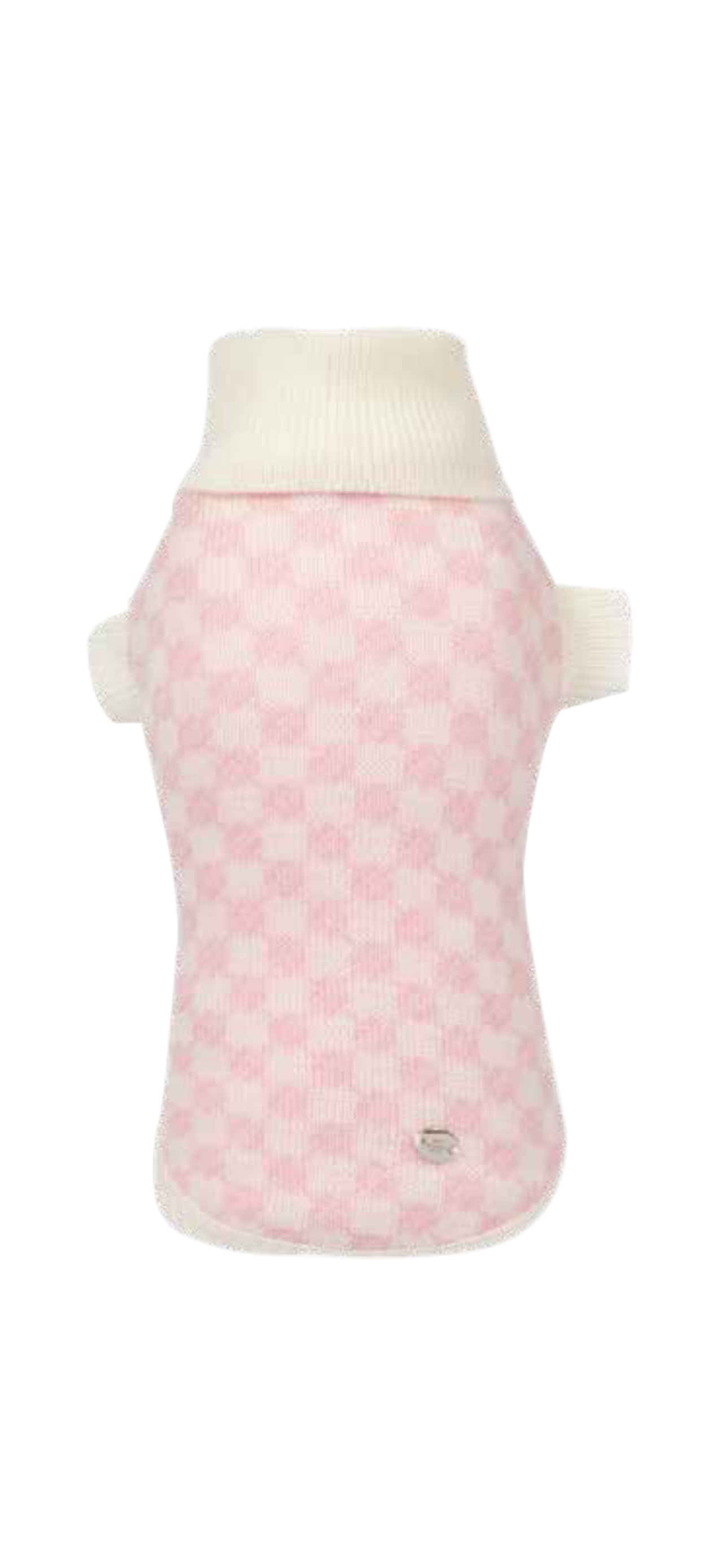 Elegante pull in lana Zegna in bianco e rosa a scacchi