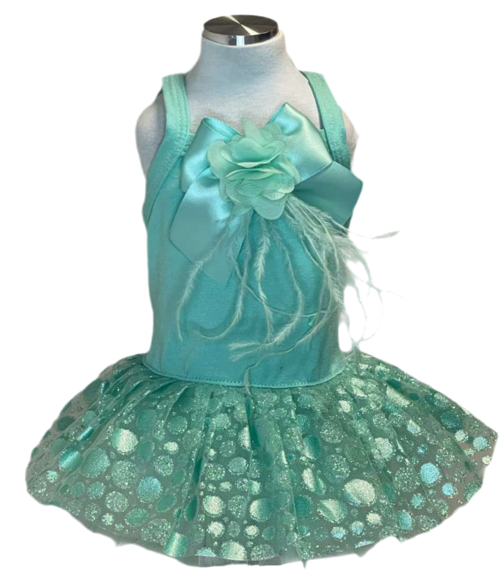 Dolcissimo abitino tiffany con gonna a pois glitterati