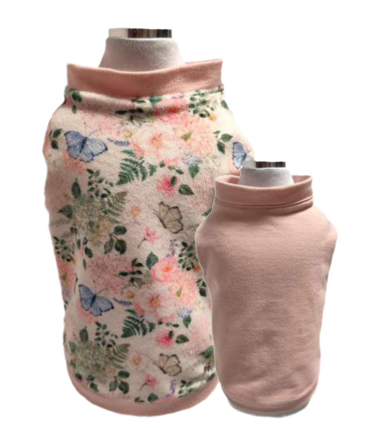 Felpina girocollo double-face con fantasia floreale e rosa antico