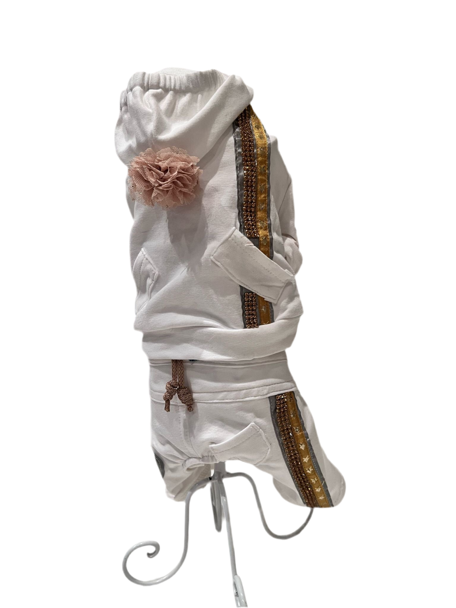 Felpina con cappuccio prestige con bande arricchite anch’esse da cristalli preziosi