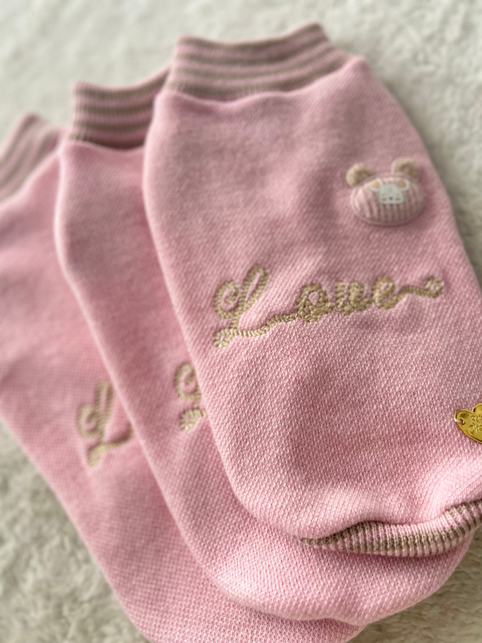 Maglione 100% lana Merinos extrafine Zegna Baruffa Con ricamo a Corda Love e apllicazione di un dolce topino