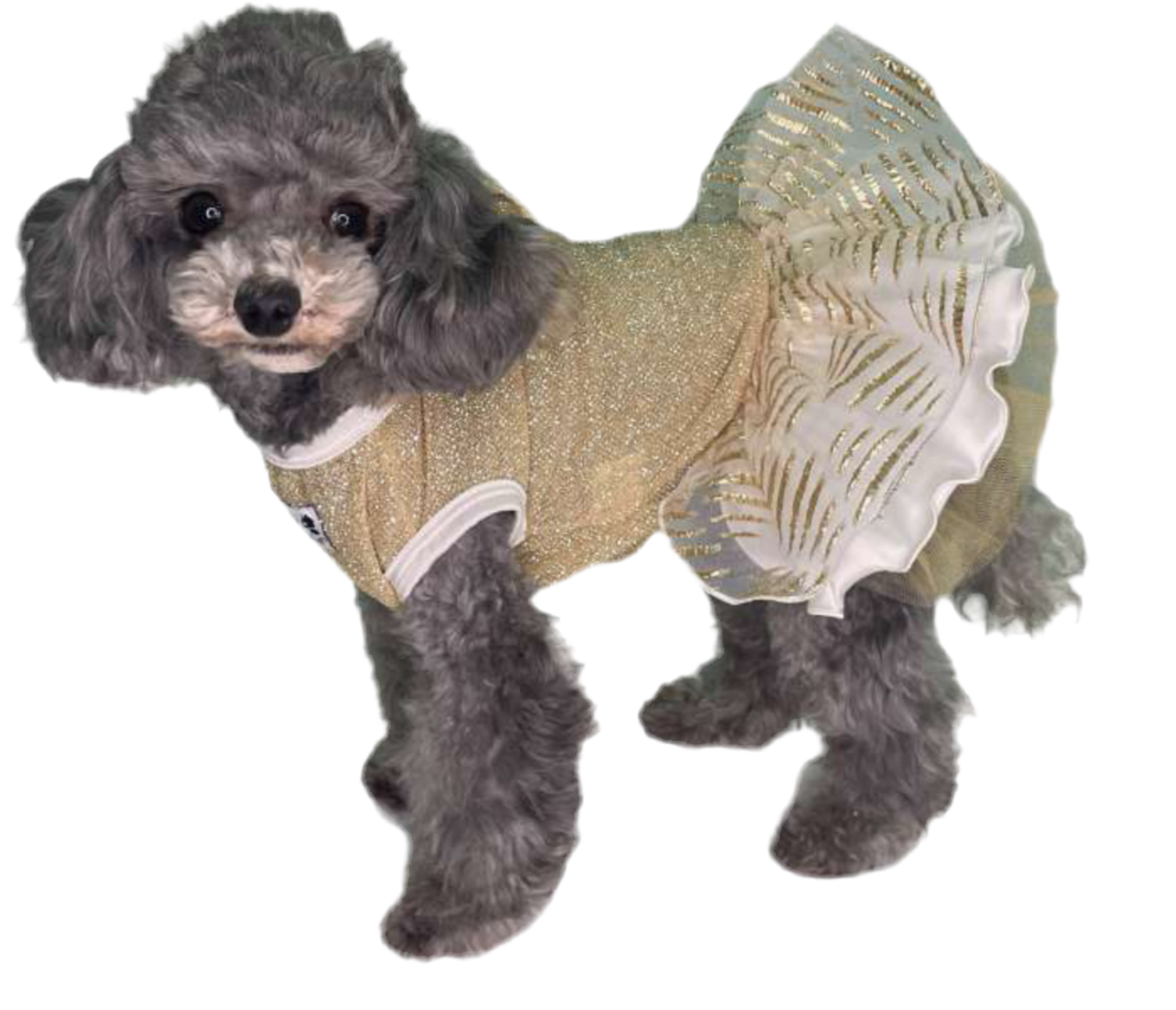 Elegante Abitino in Raso lurex e Tulle in Oro , con fiocco