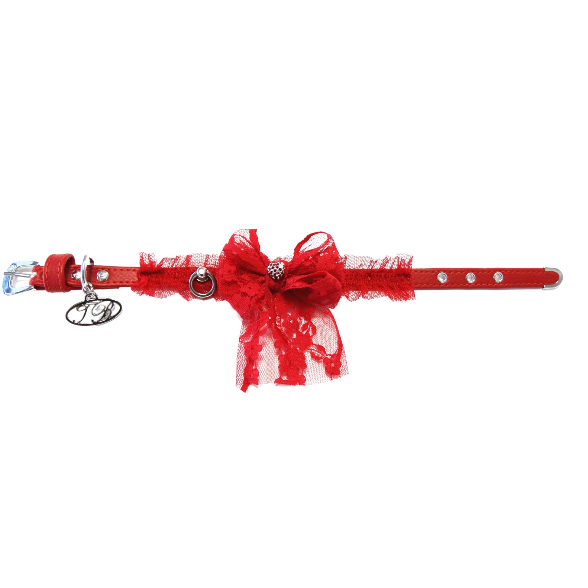 COLLARE ROSSO CON TULLE, FIOCCO E PIZZO ROSSO E CUORE CON CRISTALLINI