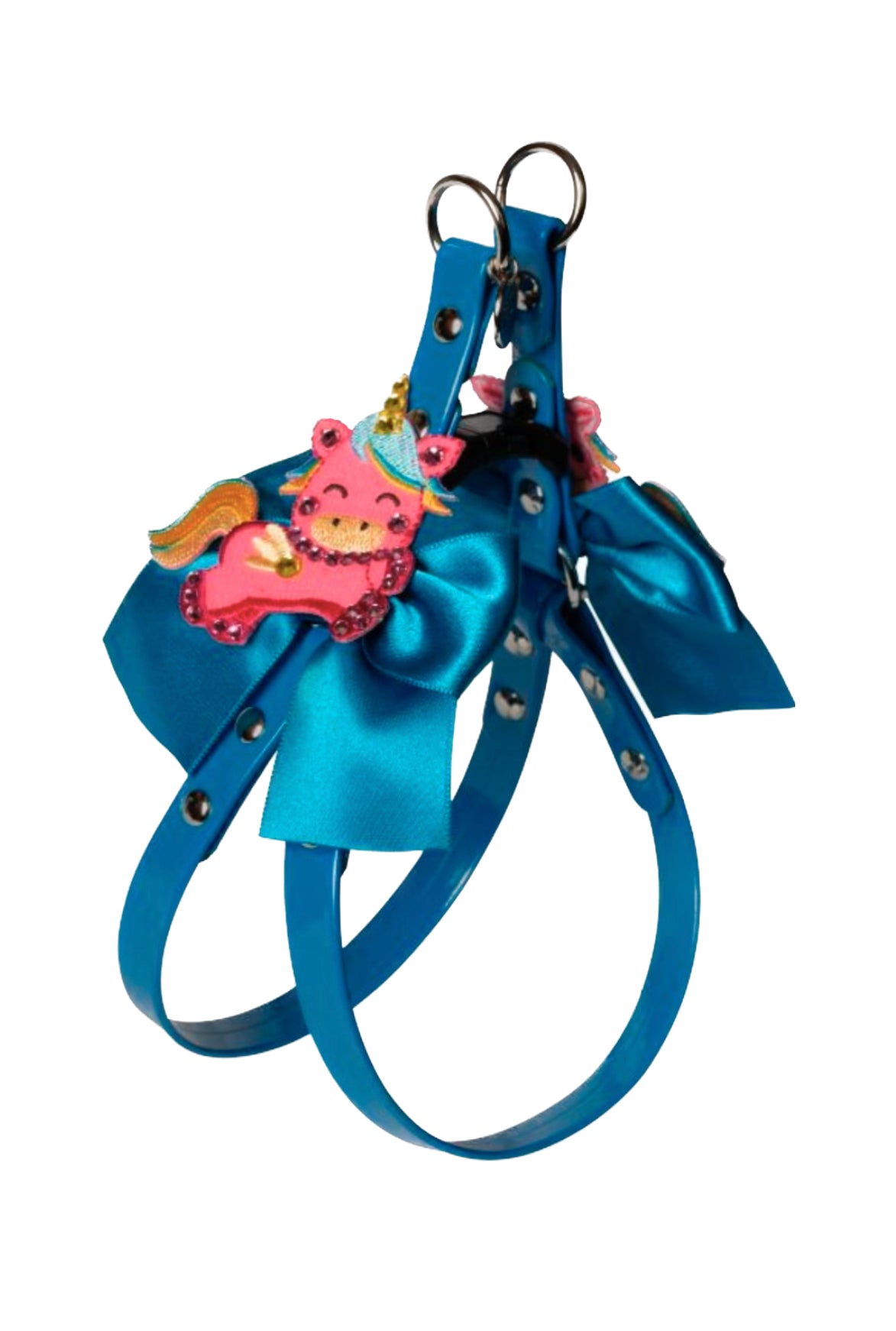 Tenera e comoda pettorina decorata da un fiocco in raso , patch di un dolce unicorno con dettagli Swarovski