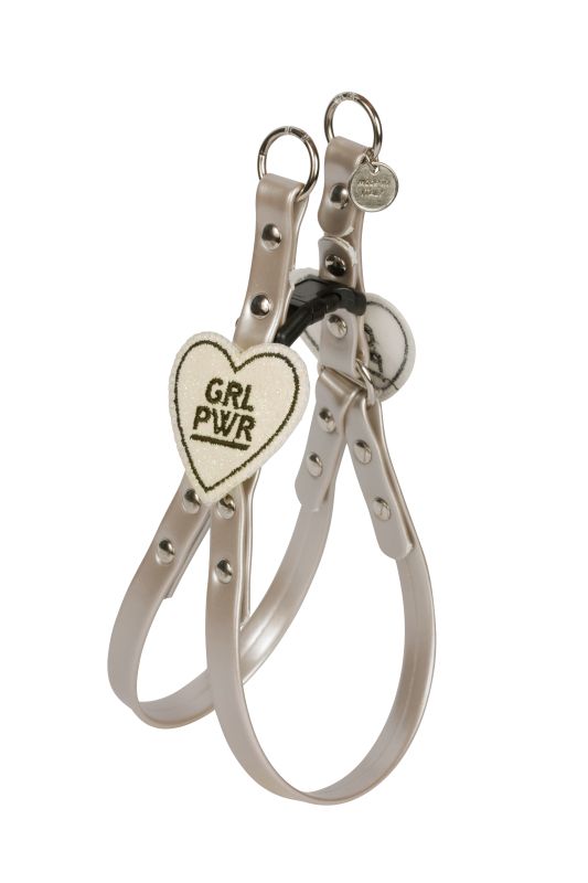 Pettorina confortevole decorata con applicazioni stilose a forma di cuore glitterato. Colori: Oro,Ostrica,Grigio perla.