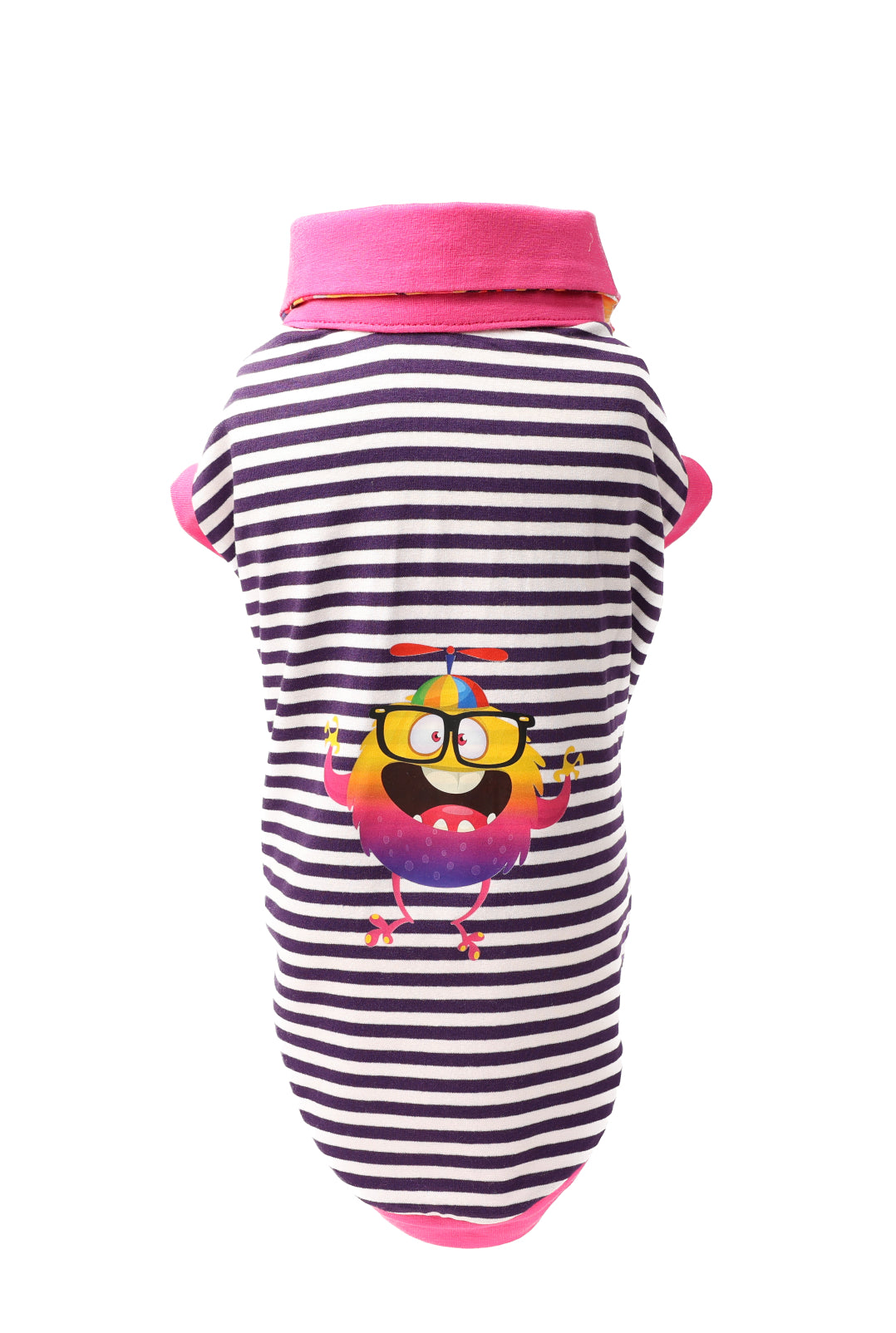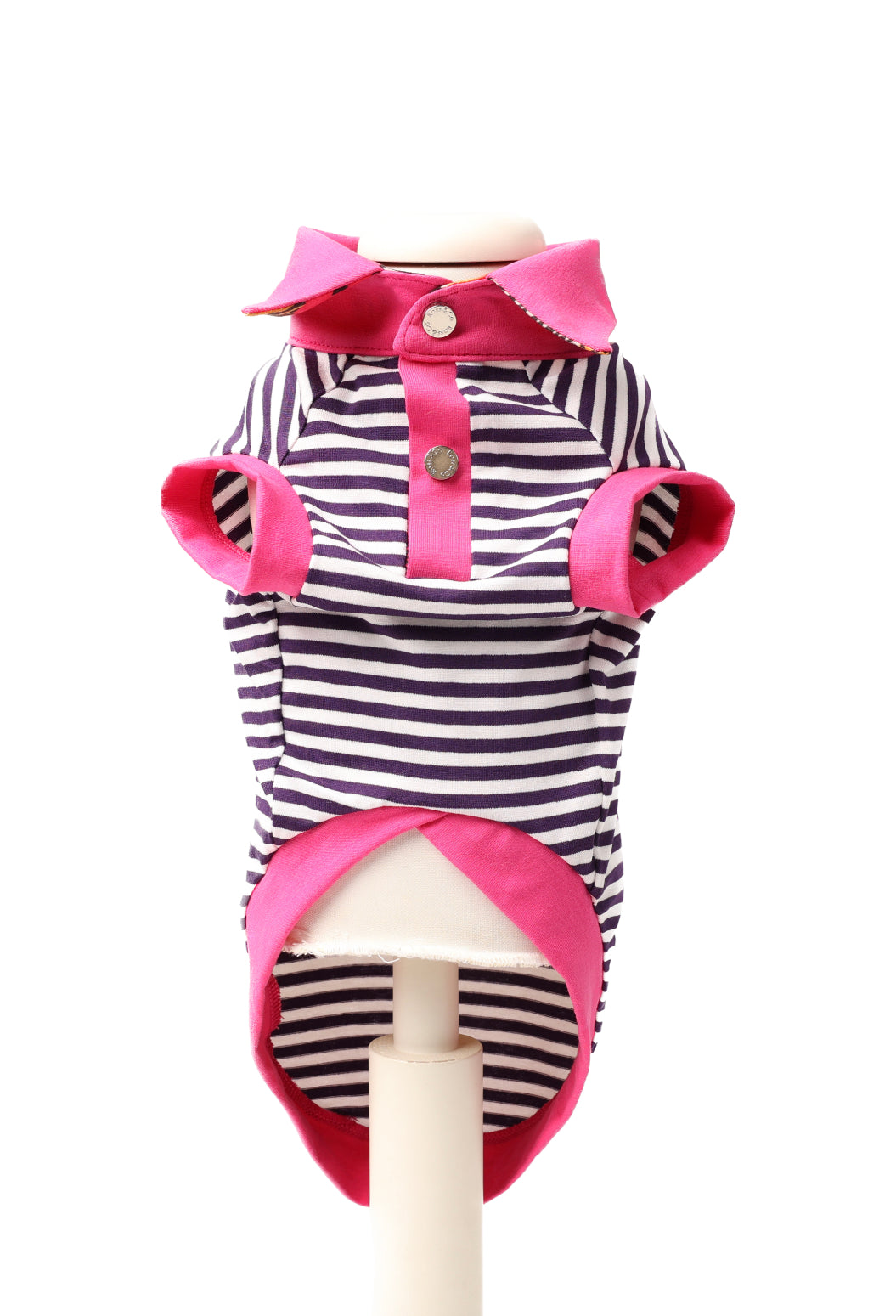 Polo in jersey a righe con particolari in contrasto fuxia e floreali.