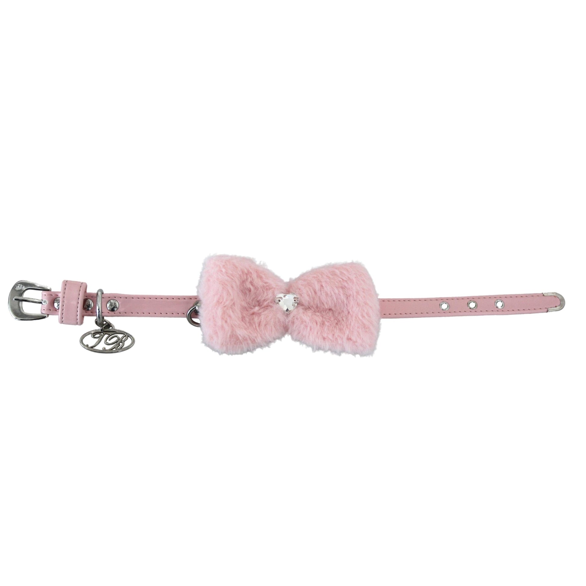 COLLARE ROSA VERNICE CON FIOCCO IN PELLICCIA ROSA E CRISTALLO CUORE