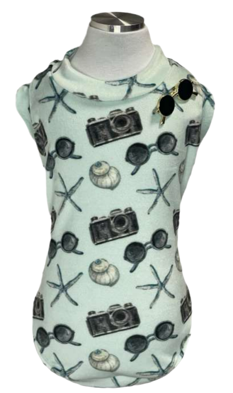 T shirt in ciniglia morbidissima con fantasia marina in toni grigi