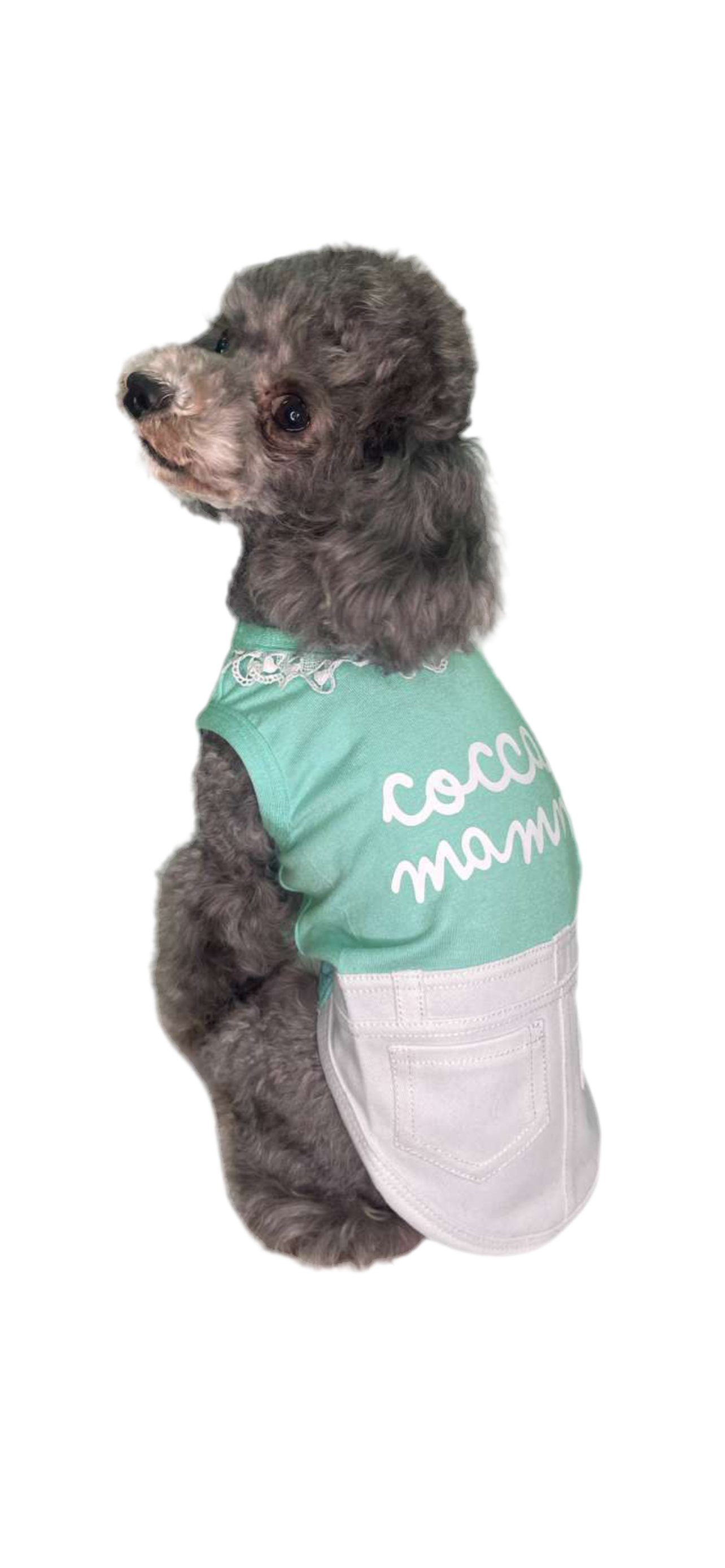 Dolce abitino in cotone , Arricchito da Pizzo bianco sul collo , scritta Cocca di mamma e gonnellina in stile mini