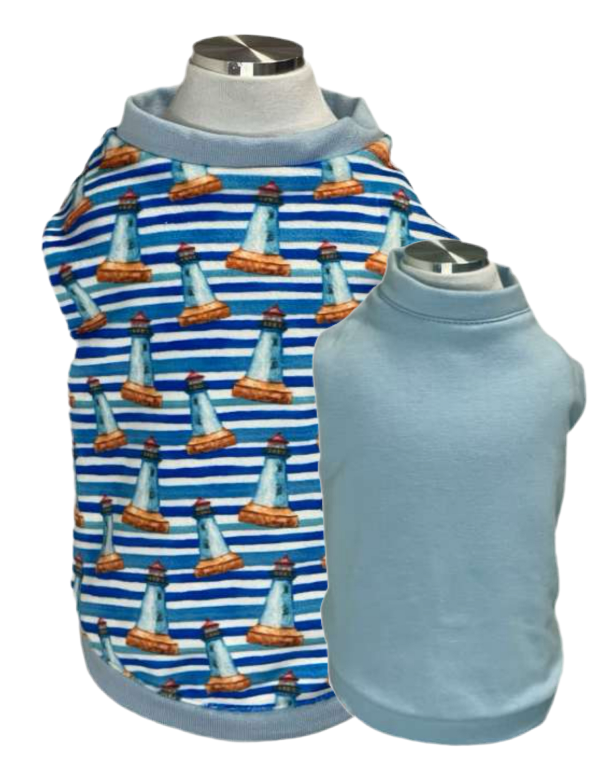 Felpina girocollo double-face con fantasia dalla marinaretta e azzurro