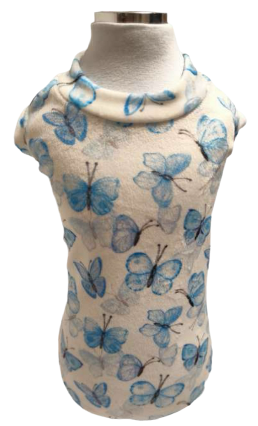 T shirt in ciniglia morbidissima con fantasia di farfalle azzurre