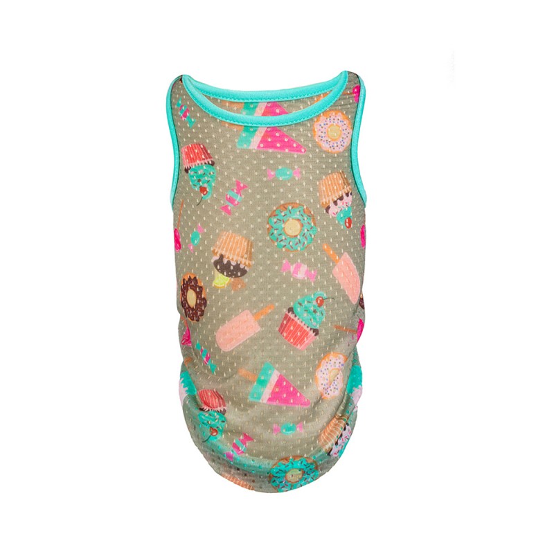 Canottiera smanicata in morbido tessuto di rete traspirante, confortevole ed elasticizzata. Stampa all over