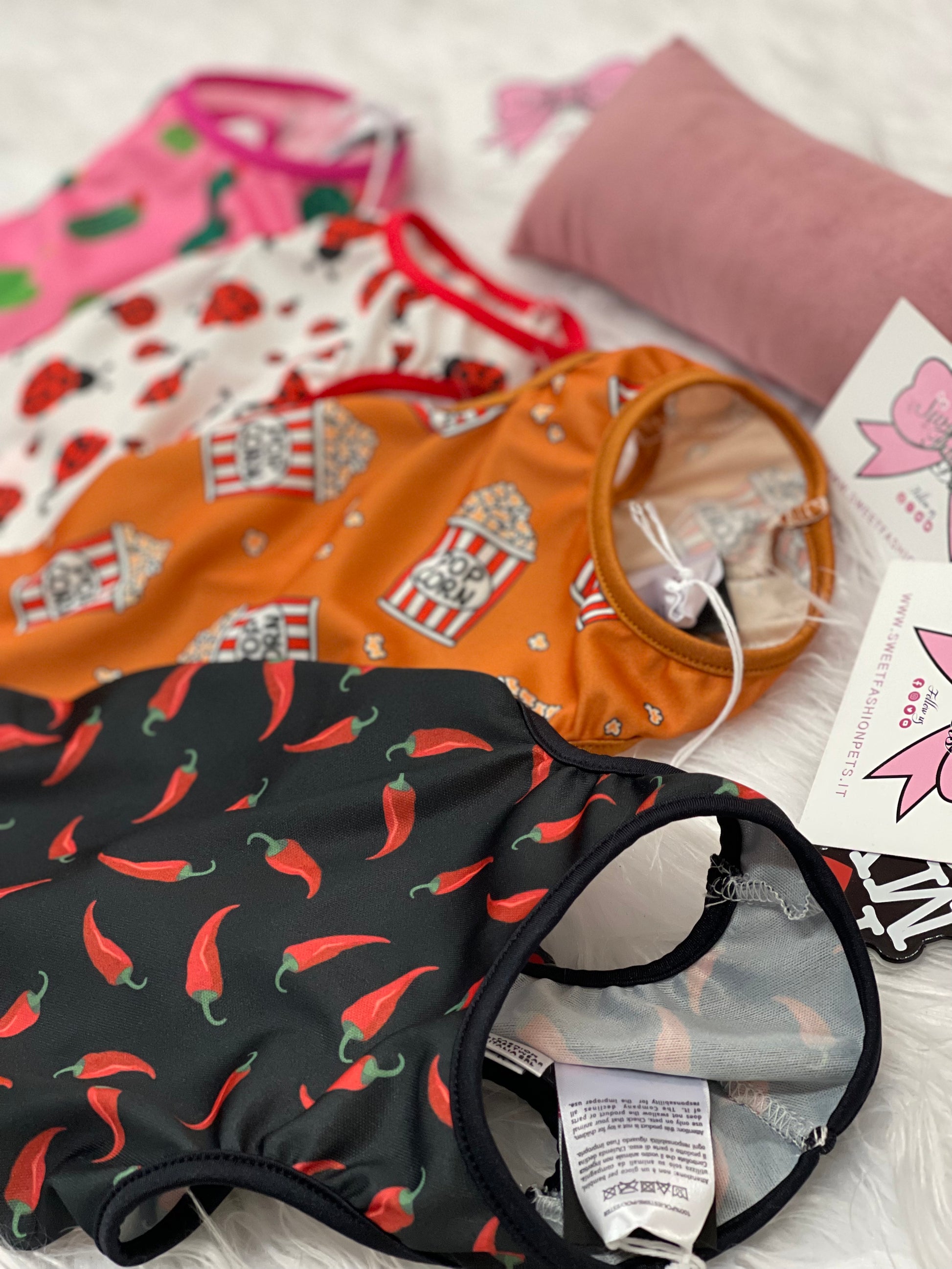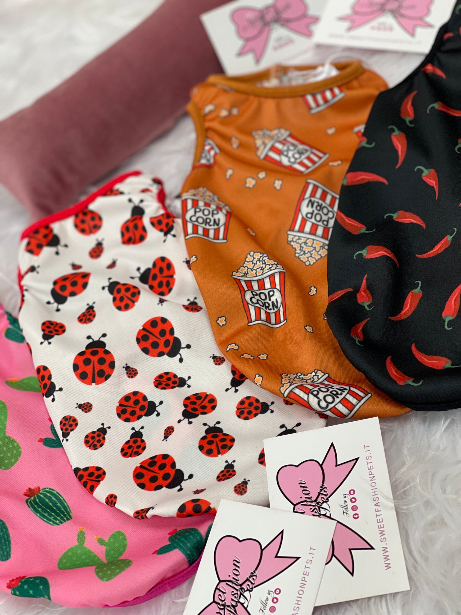 Canottiera smanicata in morbido jersey in special Edition for Sweet Fashion Pets con stampe, elastica, confortevole e fresca. Stampa sulla schiena di simpatici soggetti.