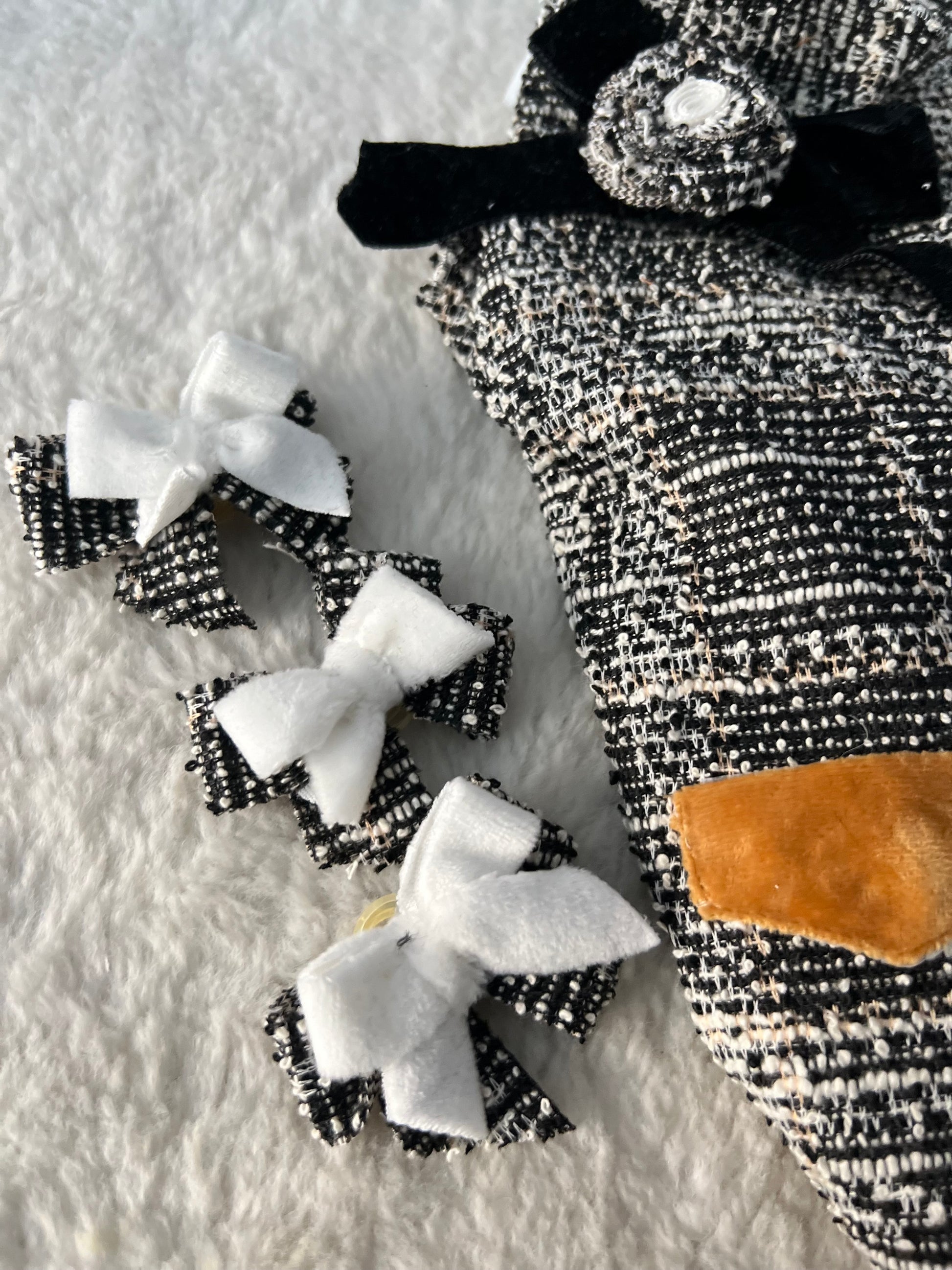 Fiocco spilla in velluto arricchito da una rosa tweed