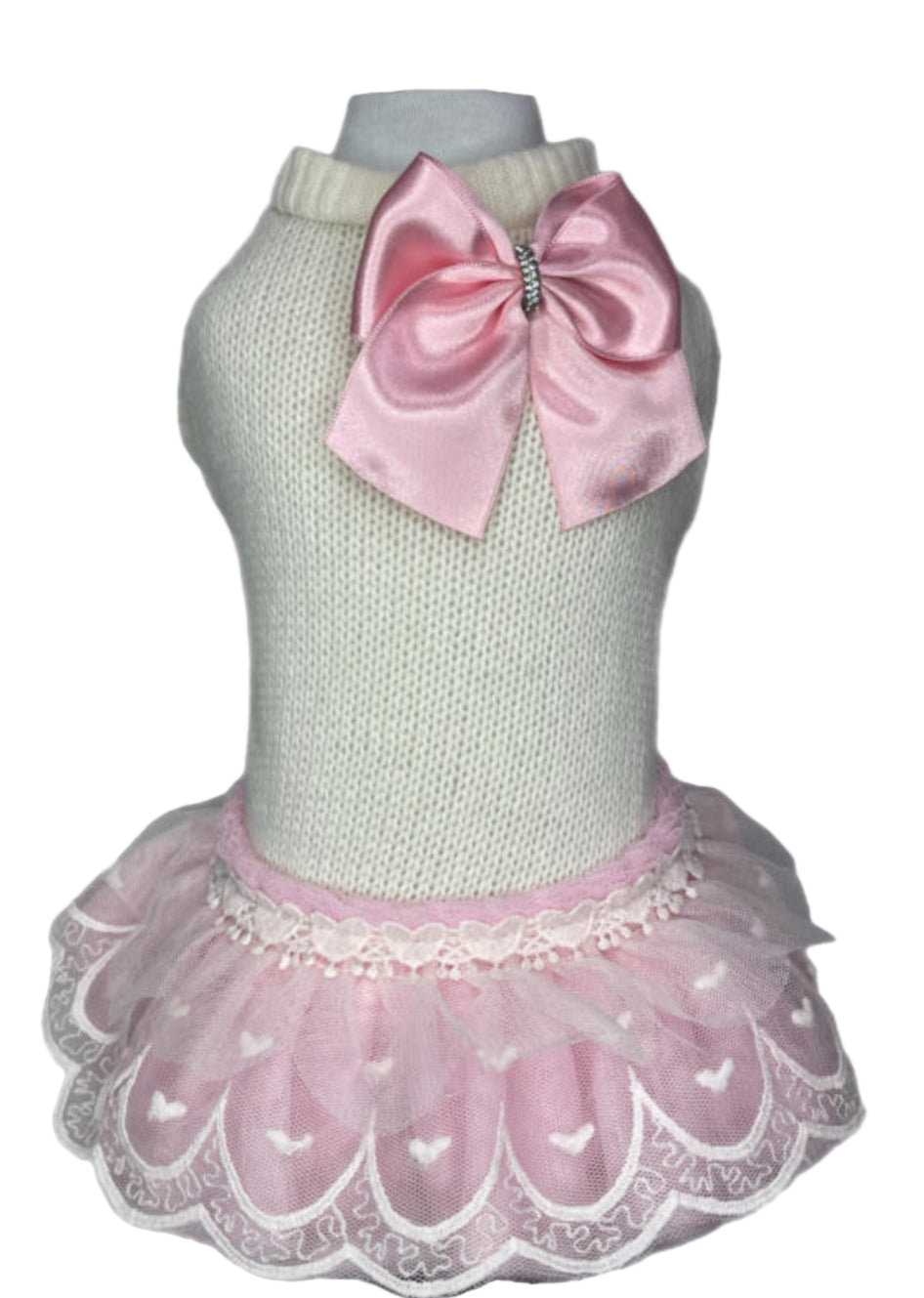 Delicato abito con fiocco e gonnellina in tulle ricamato: un tocco di dolcezza elegante