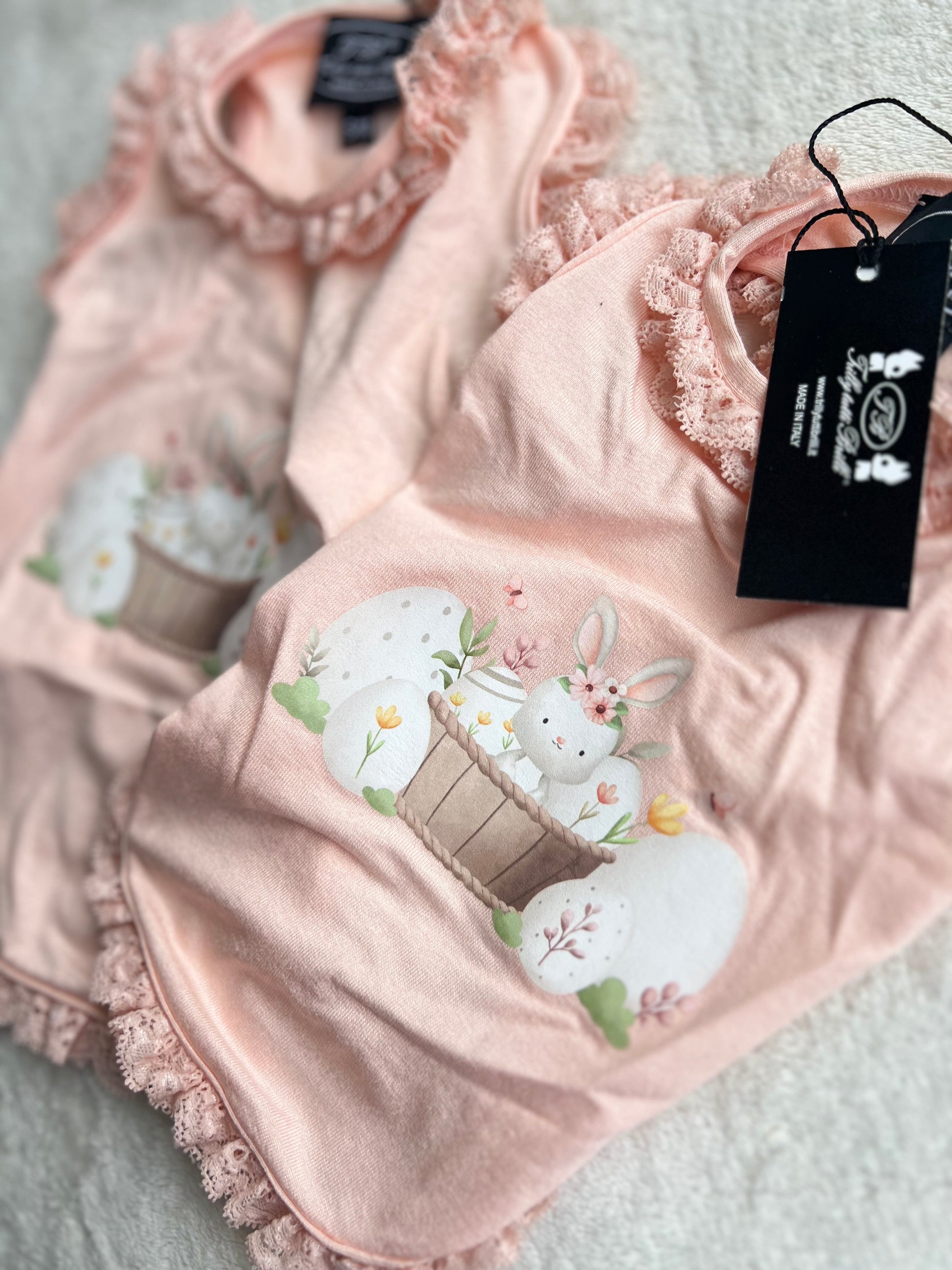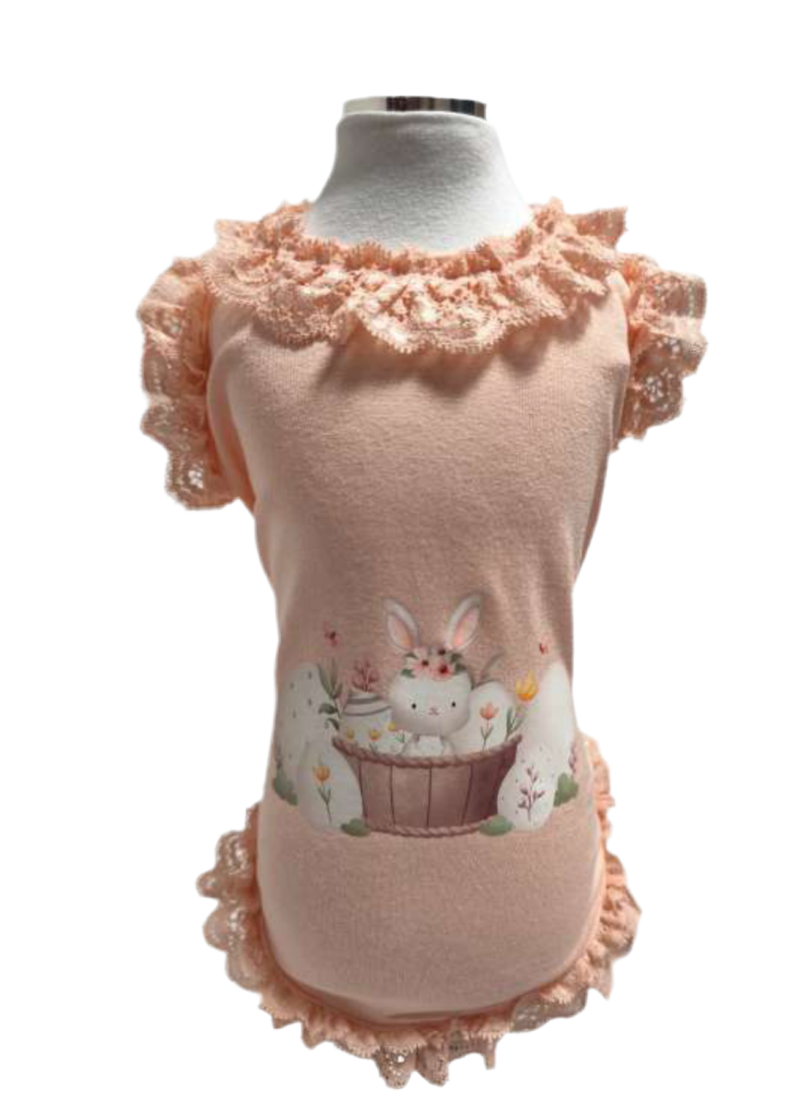 T-shirt con stampa coniglietto , arricchita da un delicato ed elegante pizzo