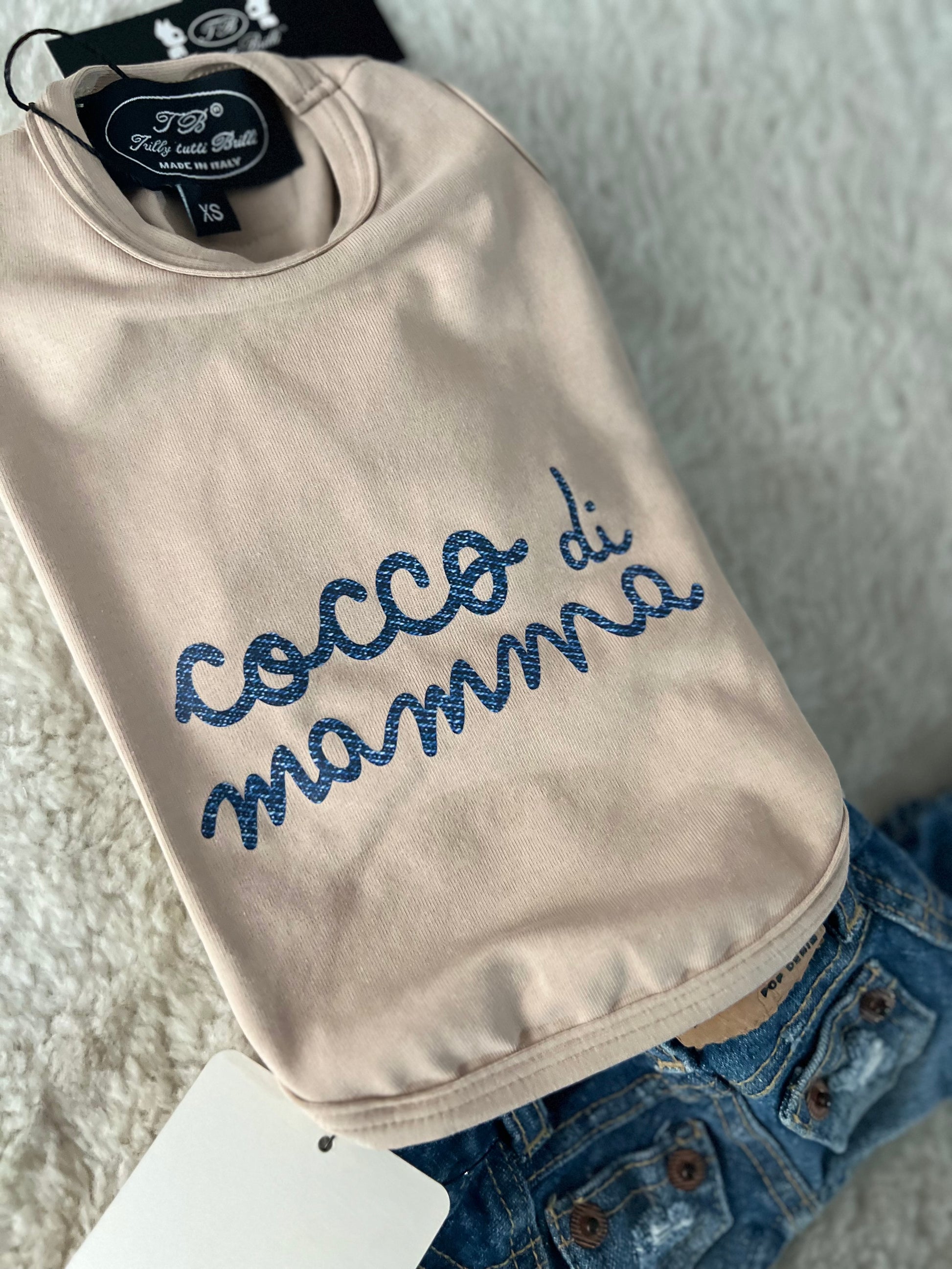 Dolcissima T-shirt fucsia in cotone con stampa “Cocca di mamma”