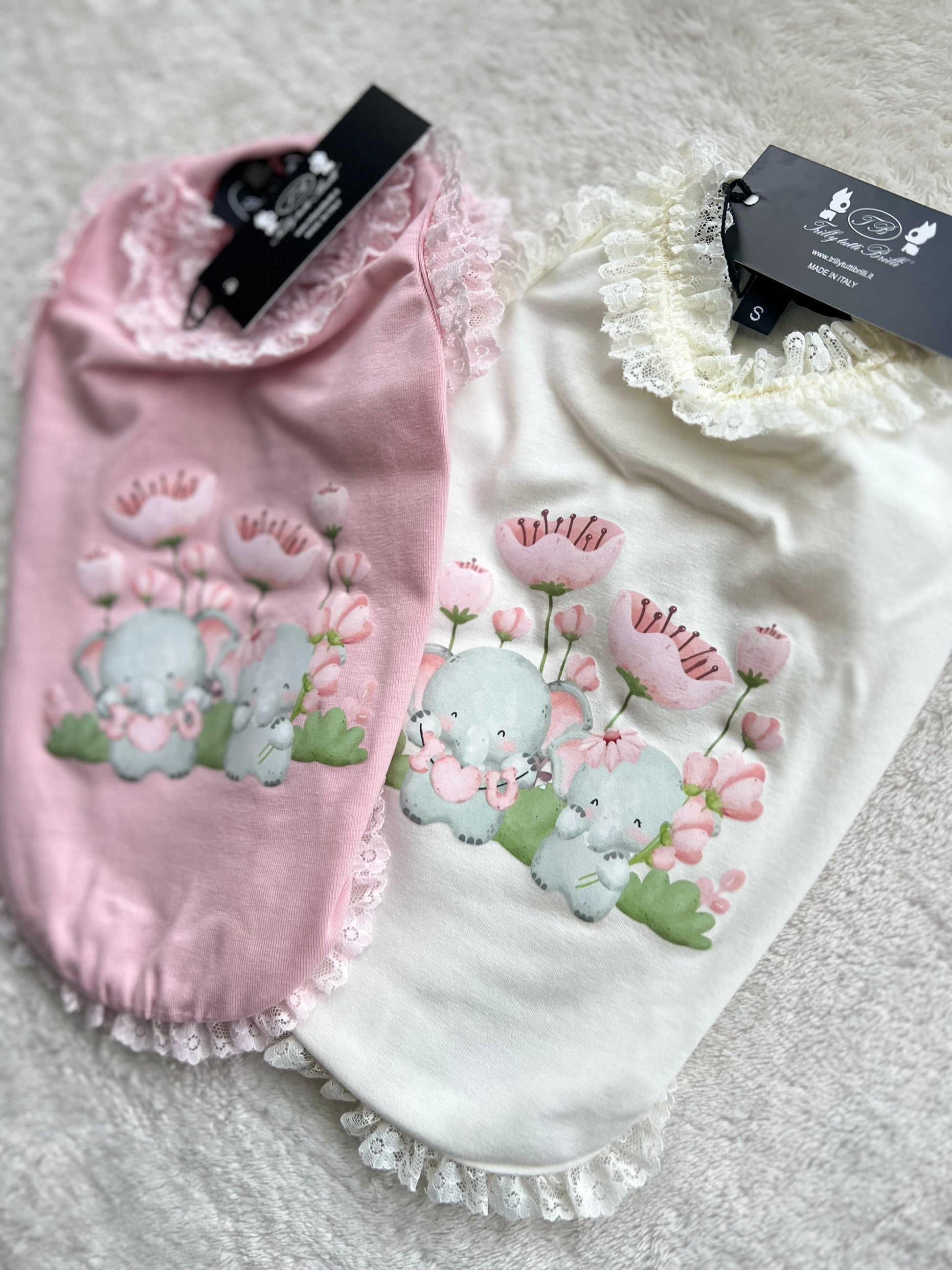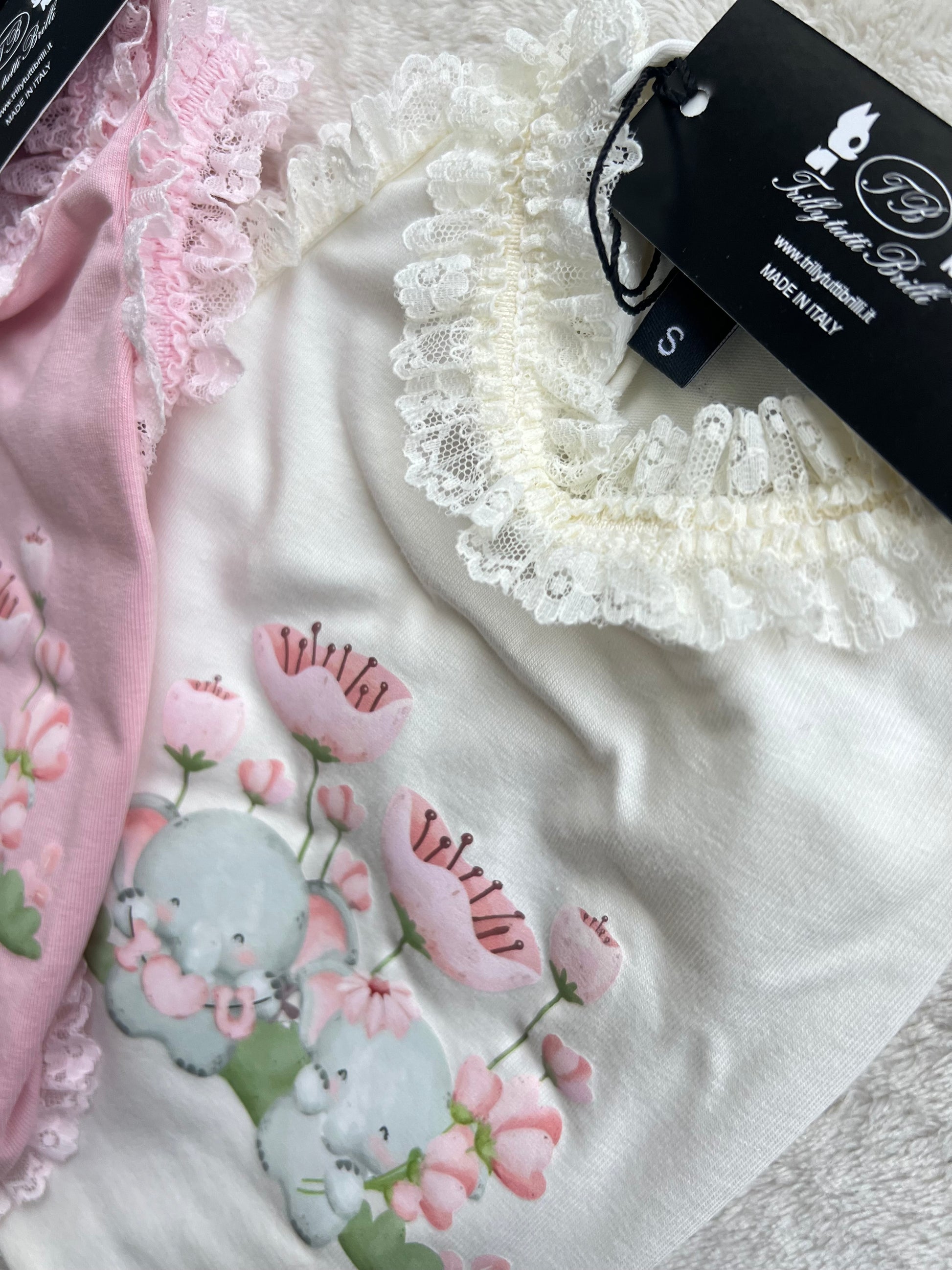 T-shirt con stampa elefantino , arricchita da un delicato ed elegante pizzo