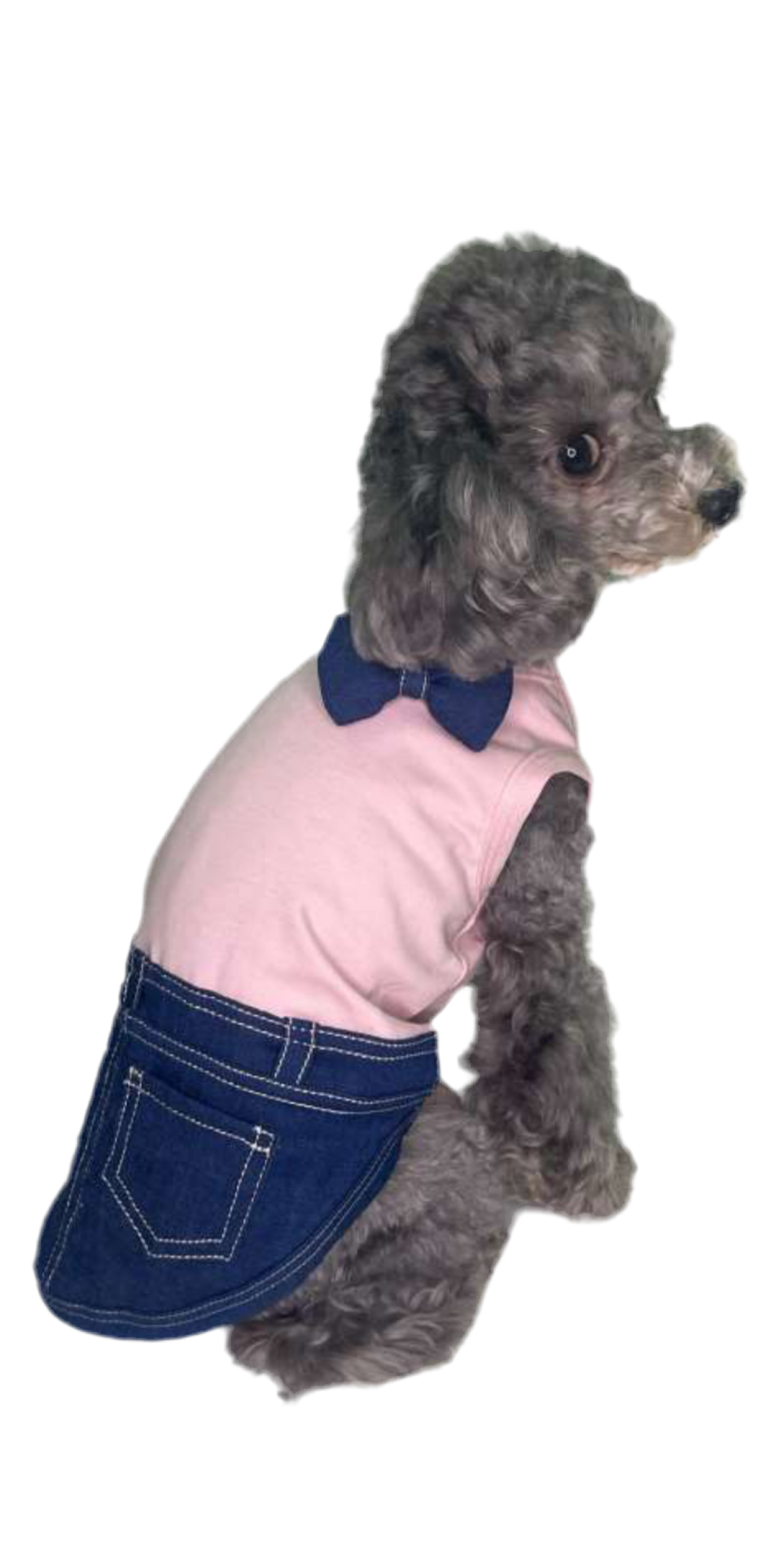T-shirt in cotone,con gonna in jeans applicata e arricchita da un morbido fiocco in jeans