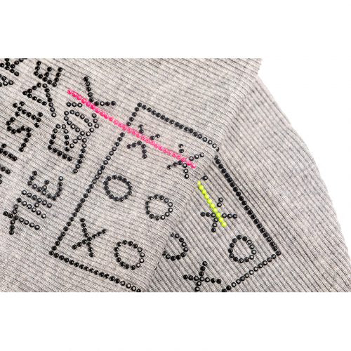 t-shirt in cotone elasticizzato a costine , con bordi fluo in giallo o fuxia e una simpatica scritta sulla schiena