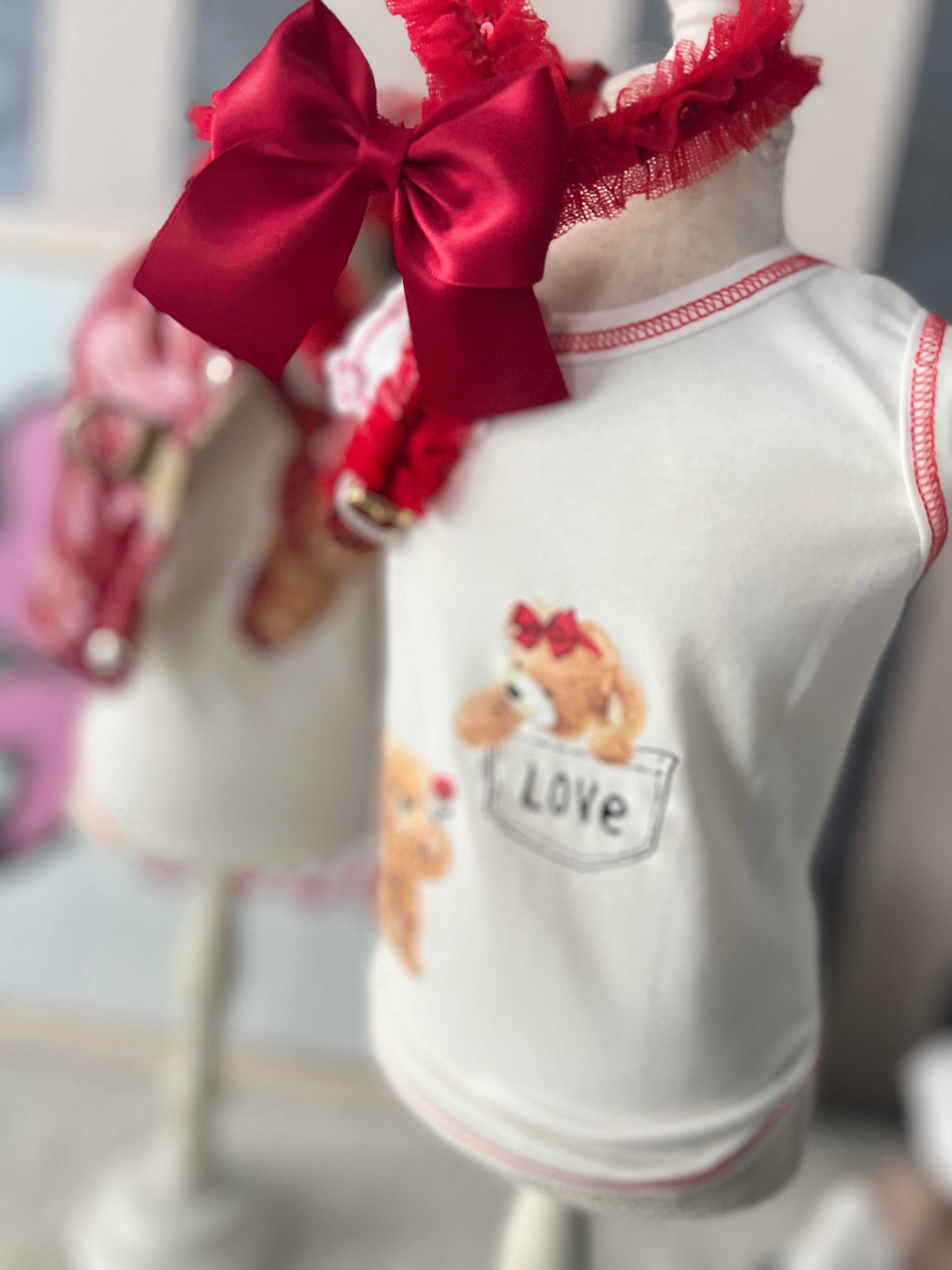 Dolcissima T-shirt in cotone con una dolce patch di orsetti romantici