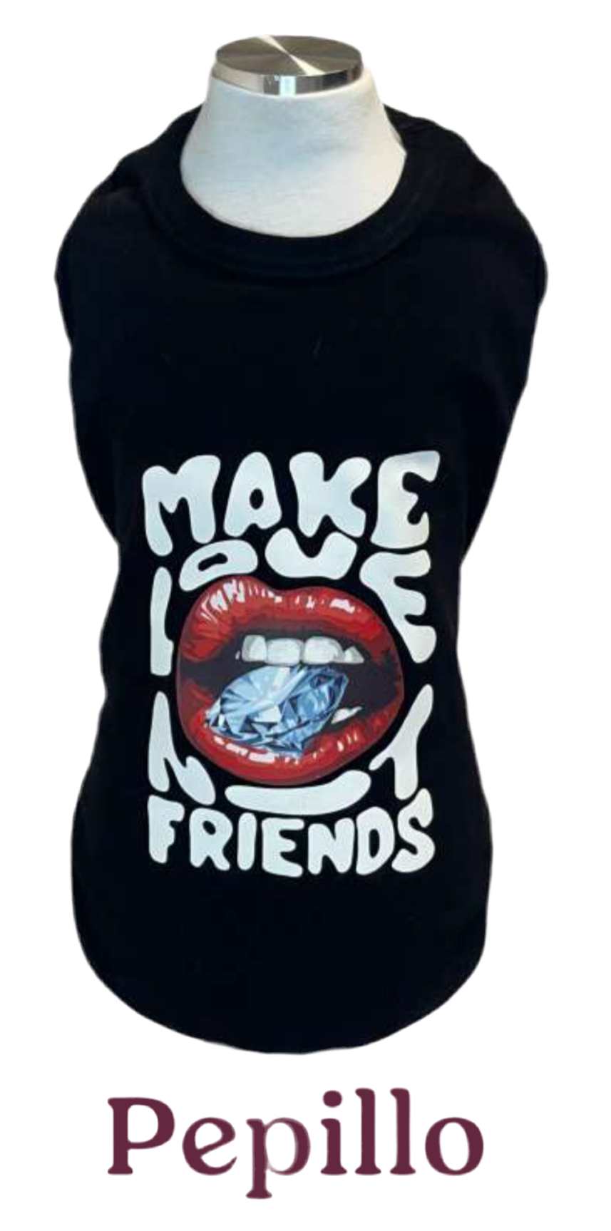Dolcissima T-shirt Nera in cotone con stampa “make love, Not friends”