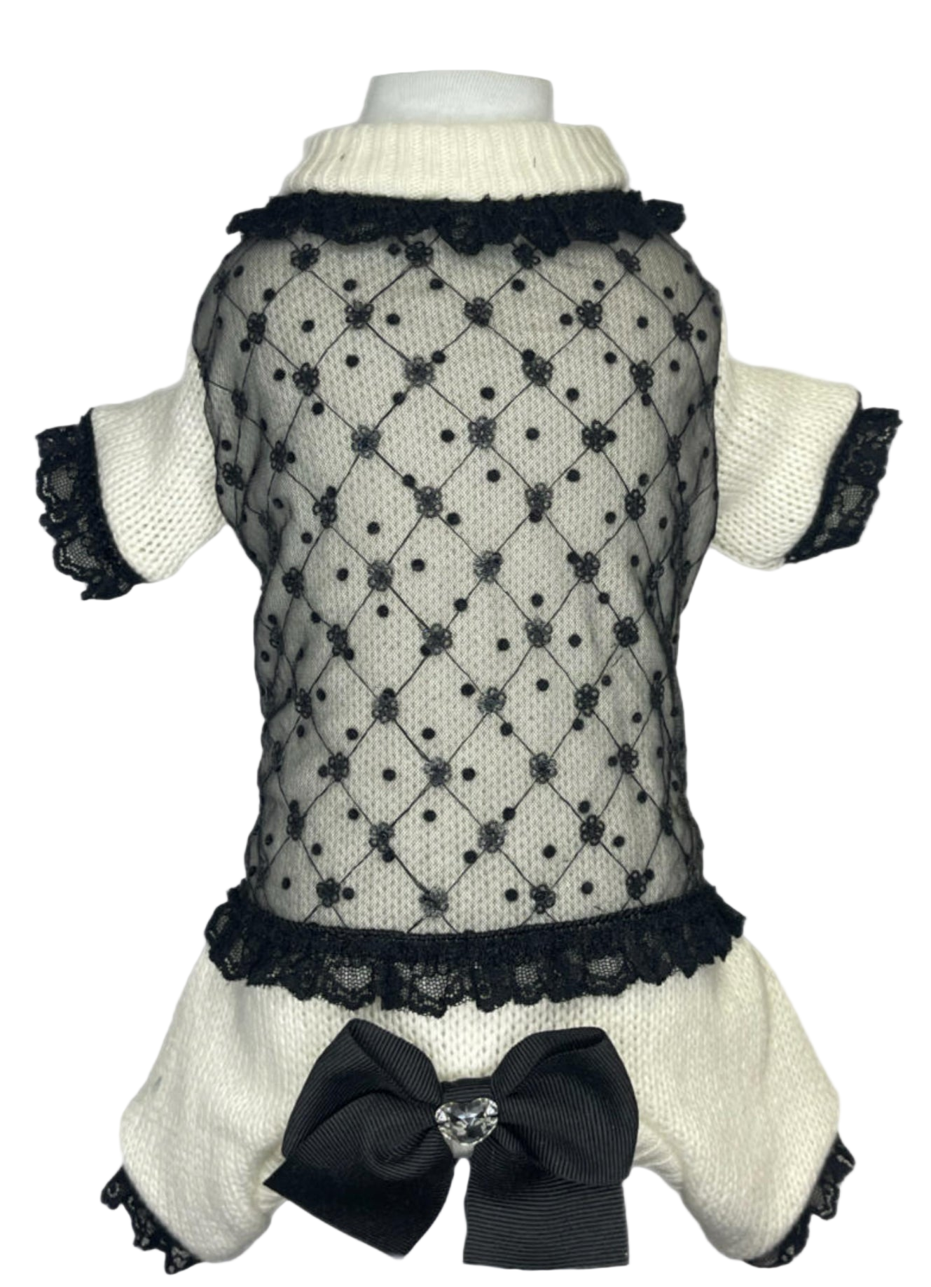 Un incanto in nero con maniche, pizzo e fiocco con cuoricino brillante