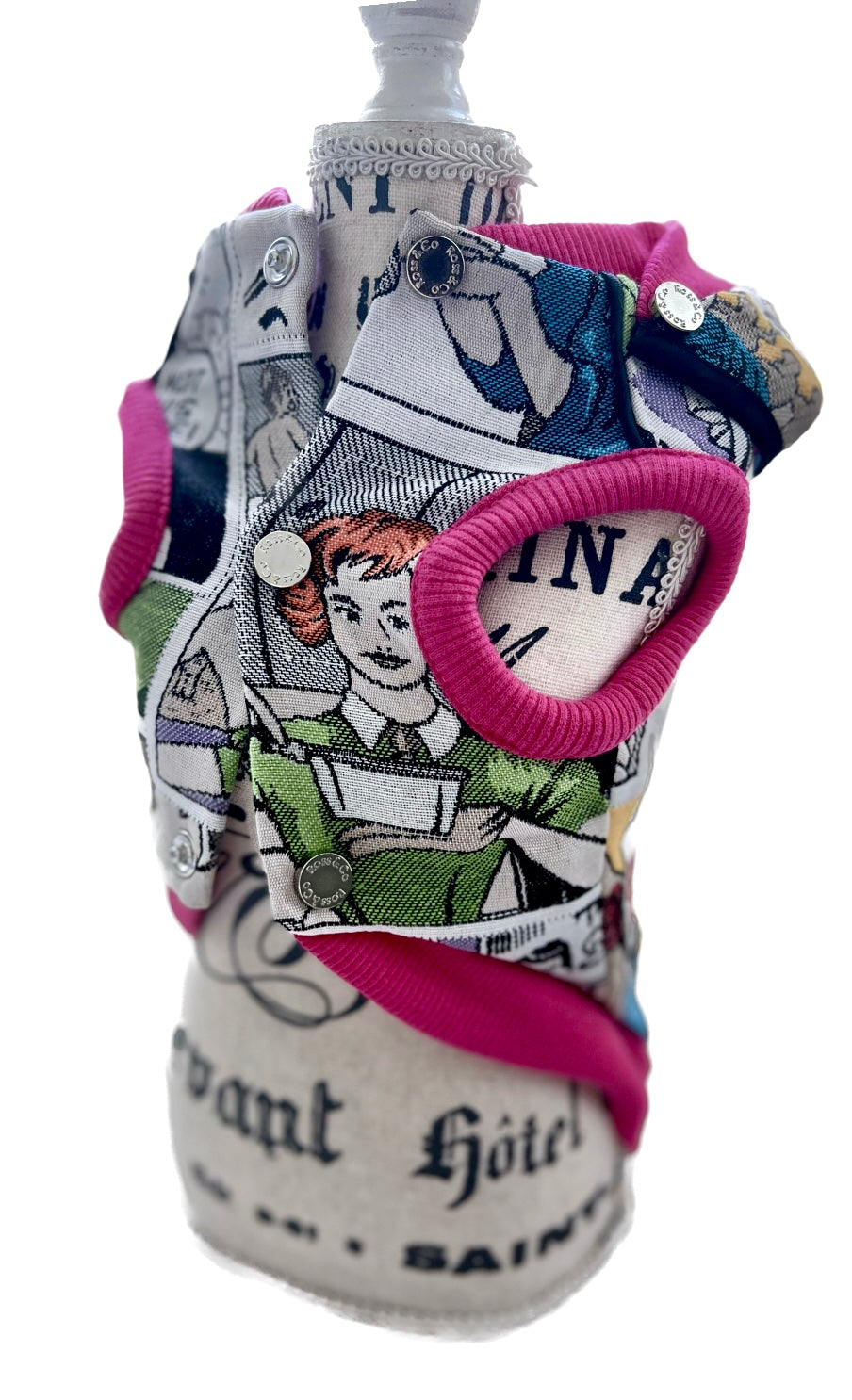 Giubotto in cotone caratterizzato da una simpatica fantasia Jaquard in stile Diabolik.