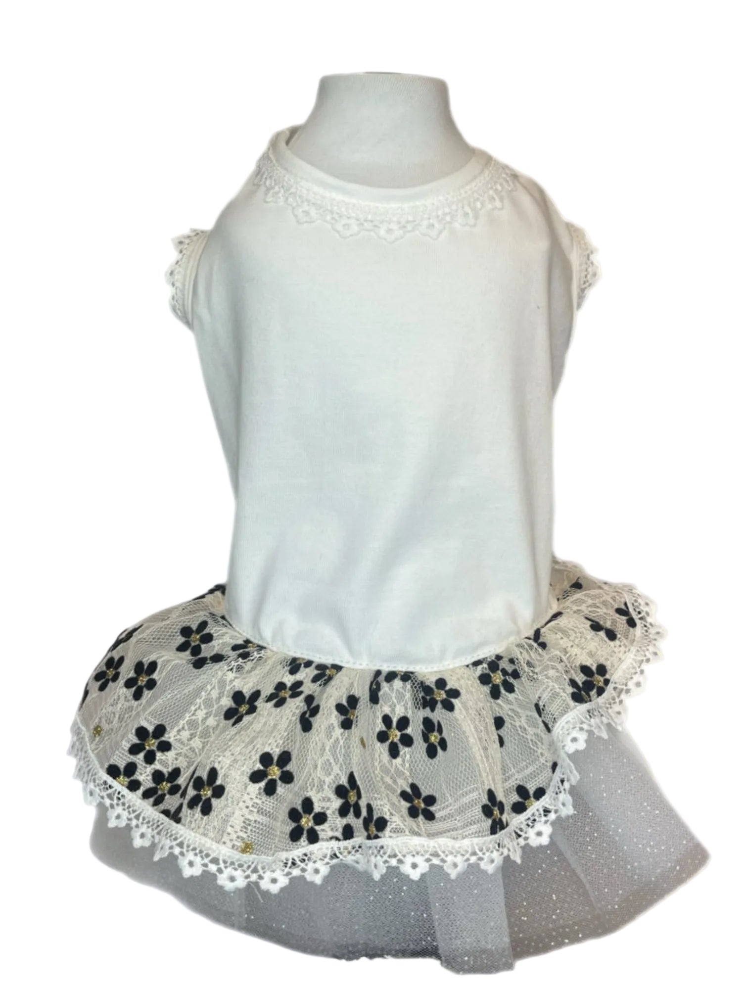 Abito in cotone con romantico tulle ricamato e pizzo avorio